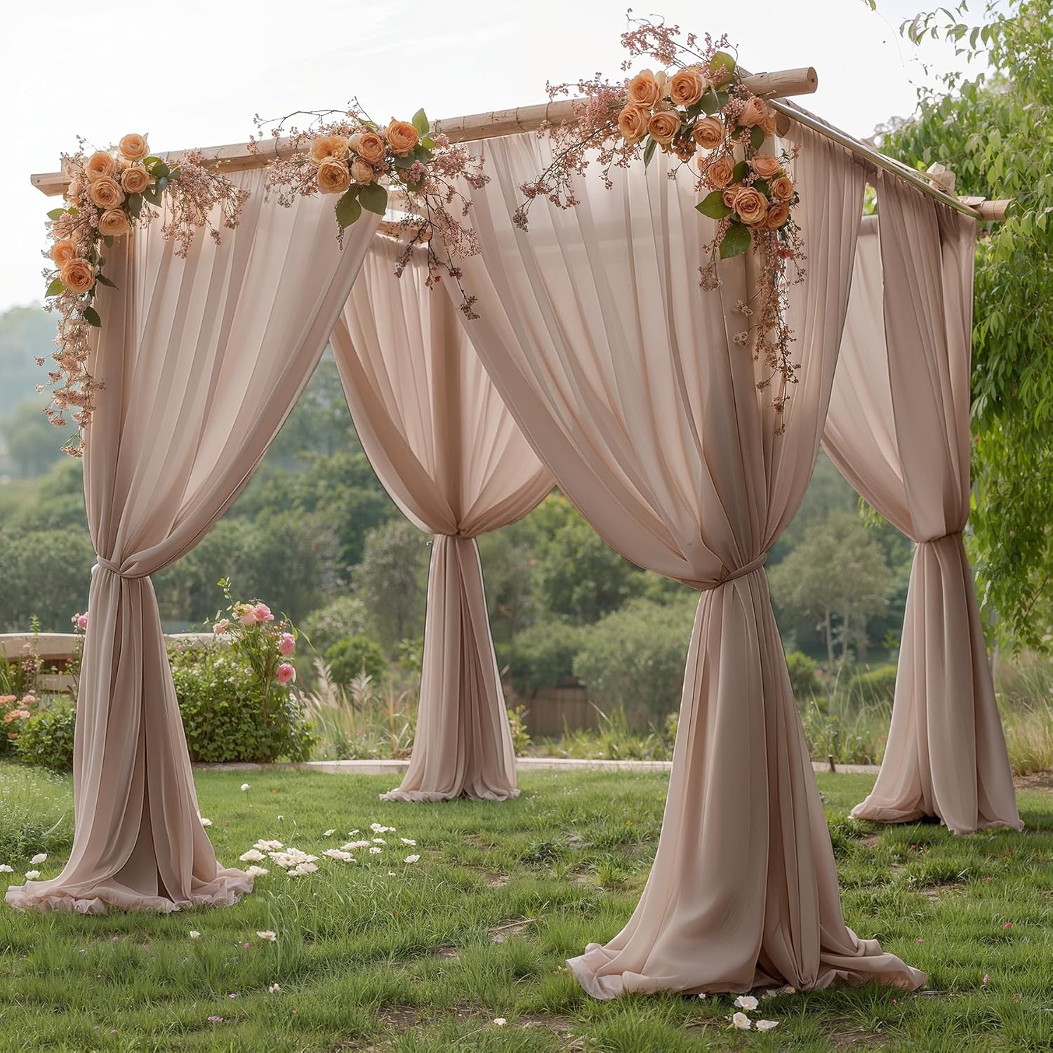 10ft x 10ft Taupe Backdrop Curtain Drapes, Wrinkle-Free Sheer Chiffon Fabric Photo Backdrop Panels for Wedding Arch Party Ceremony Stage Photo Backgrounds