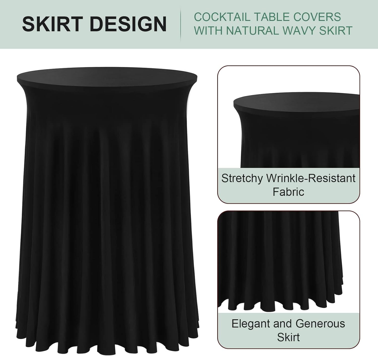 Cocktail Table Covers - 2 Pack 32"x 43" Black Cocktail Table Tablecloth with Natural Wavy Round Skirt for Bar Wedding Party Banquet