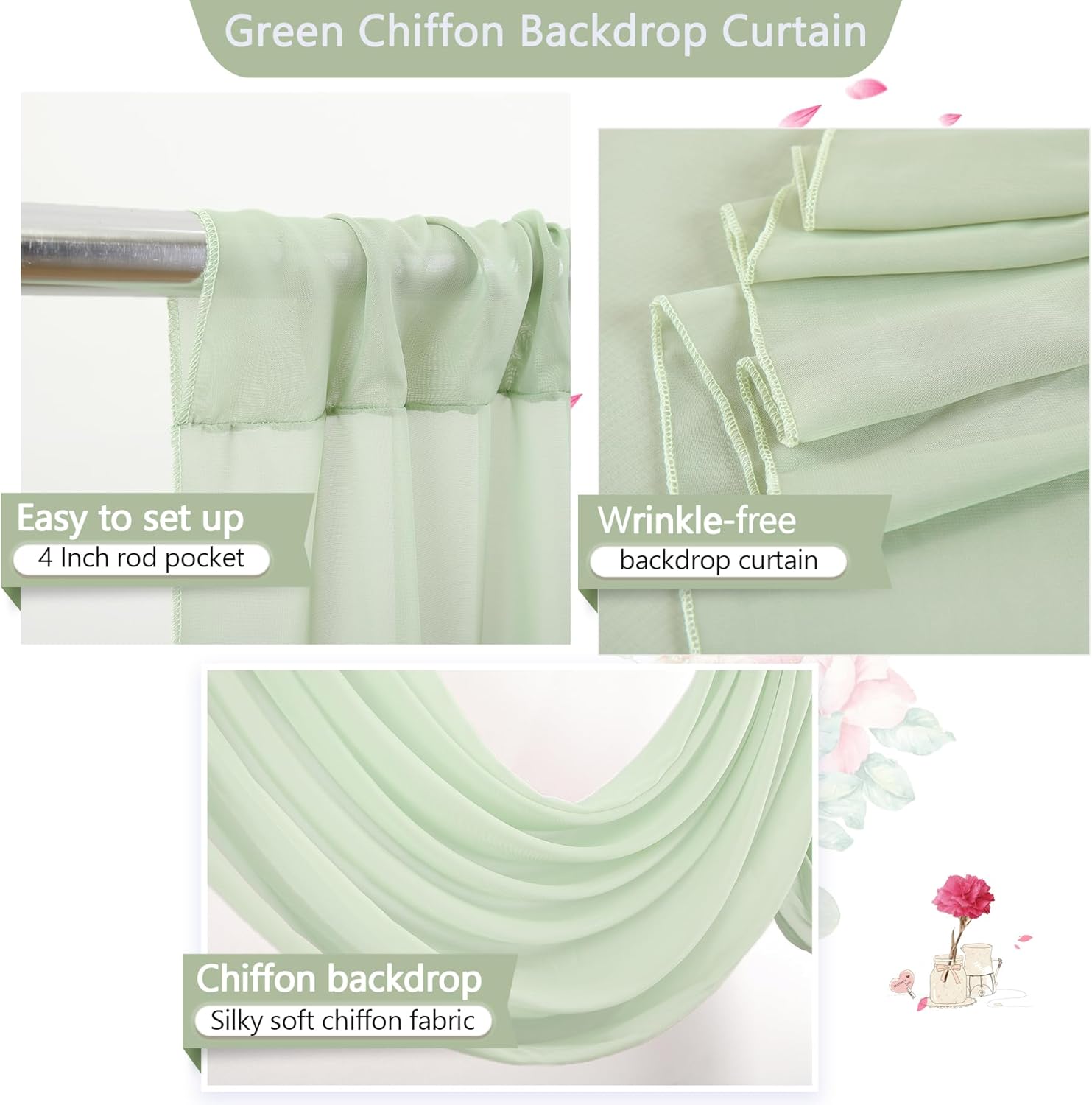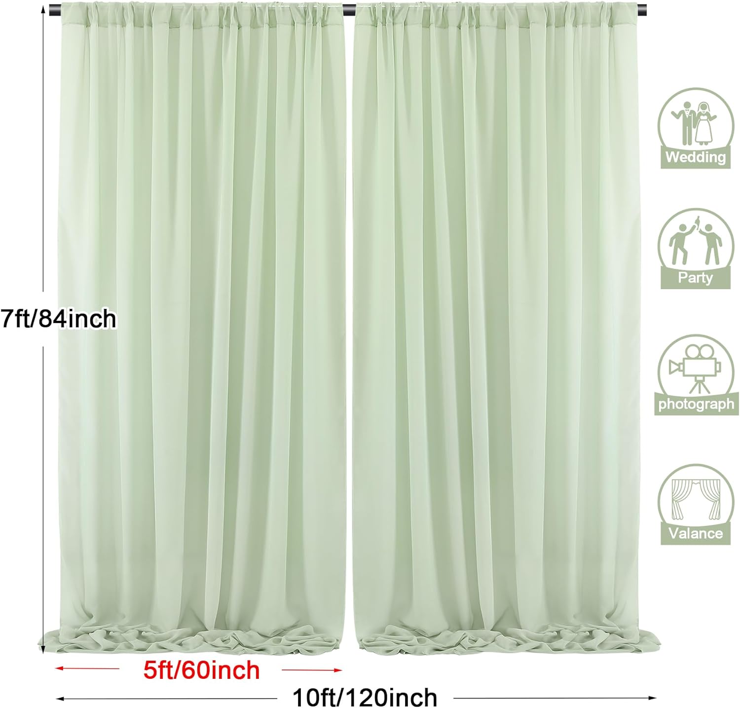 • 2 Panels Backdrop Drapes: Come with 2 panels Sage Green chiffon backdrop curtains,each panels size is 5ft width and 7ft height. Combined, entire backdrop curtains is 10ft*7ft. Please note: Not including the background stand