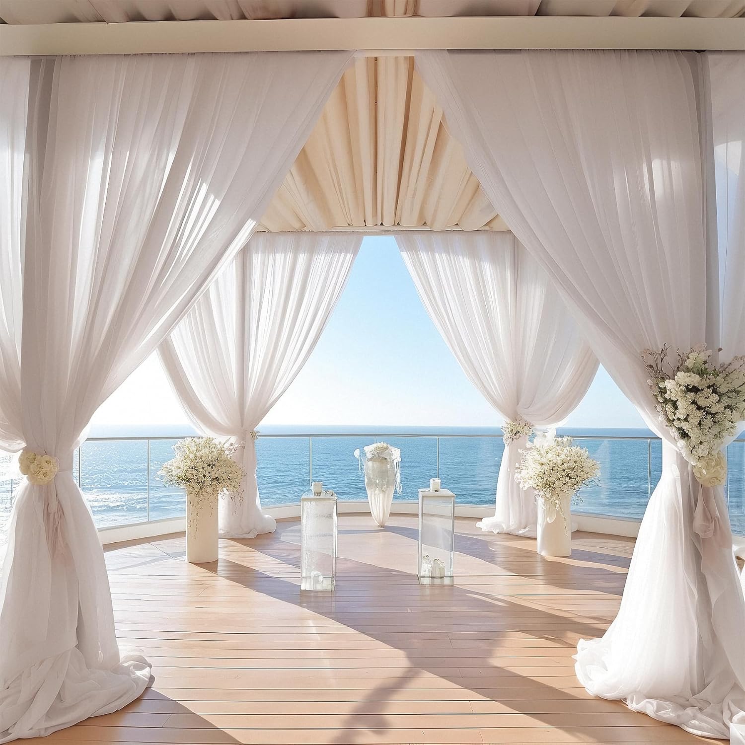 • Easy Installation: Our White drapes for backdrop with a 4 inches rod pocket on the top which easy draping or straight hanging, saving you time and effort during setup.All edges of curtain backdrops are neatly stitched, preventing sagging or shape loss after washing.​ Soft chiffon fabric droop naturally from ceiling to floor, will instantly make your wedding more elegant