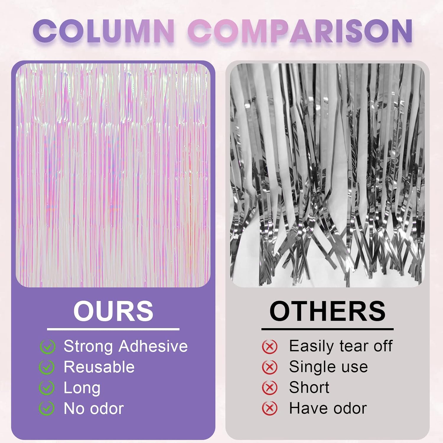 • Eye-Catching Design: These tinsel backdrops boast vibrant colors and a shimmering effect that reflects light beautifully. Your friends will be mesmerized by the captivating atmosphere these curtains create
