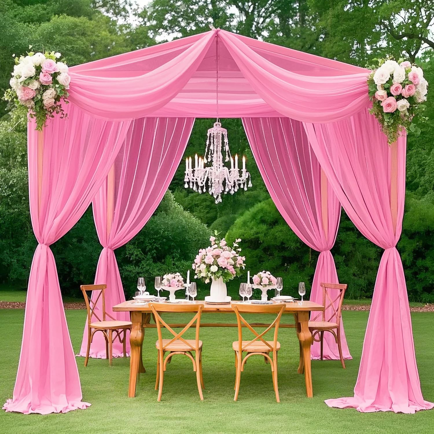 • ⭐Quality Material - Pink Ceiling Drapes: The material of chiffon curtain is premium sheer chiffon fabric, silky soft and wrinkle-free, sturdy and reusable. More graceful than other nylon fabrics. All edges of sheer fabric for draping arch are finished with with nice stitching. The wedding drapery is a good choice for party decoations, giving your events an elegant and romantic look.