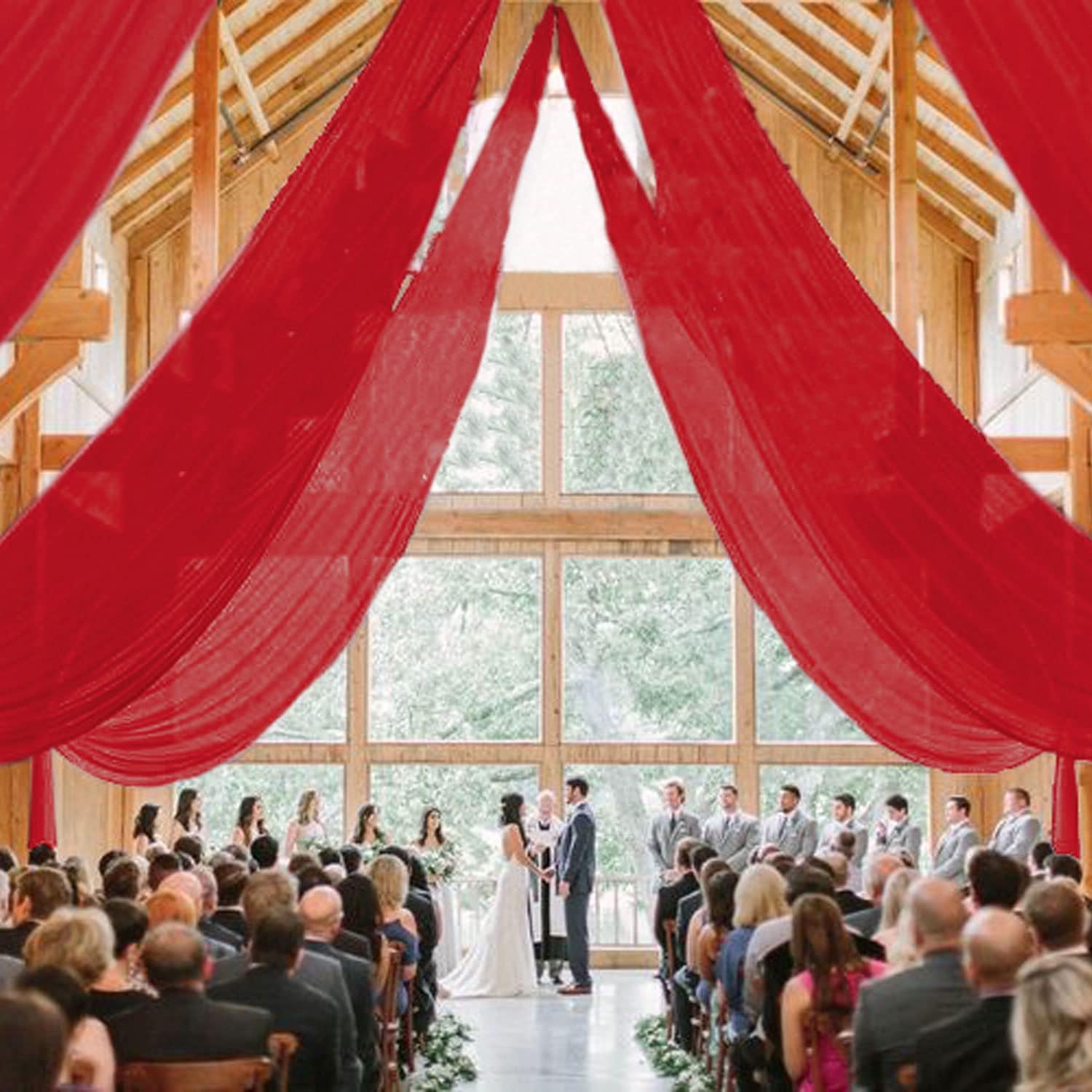 MODFUNS Ceiling Draping Red Ceiling Drapes for Parties 5x30FT 2 Panels Chiffon Sheer Draping Fabric for Wedding Arch Drapery Curtains Tulle Arbor Drapes for Wedding Reception Birthday Curtains