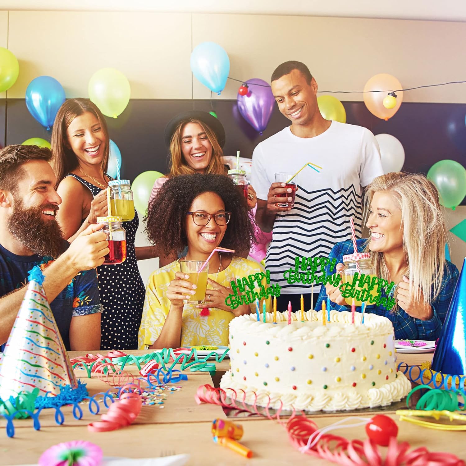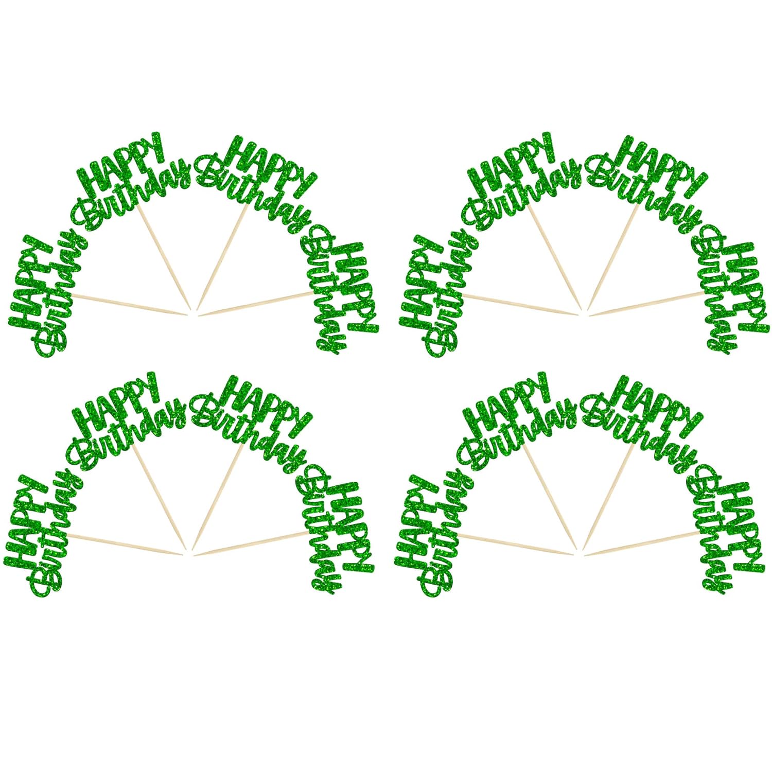 Gyufise 24 Pcs Happy Birthday Cupcake Toppers Glitter Cupcake Food Picks for Celebrating Theme Party Cake Decorations Supplies Green