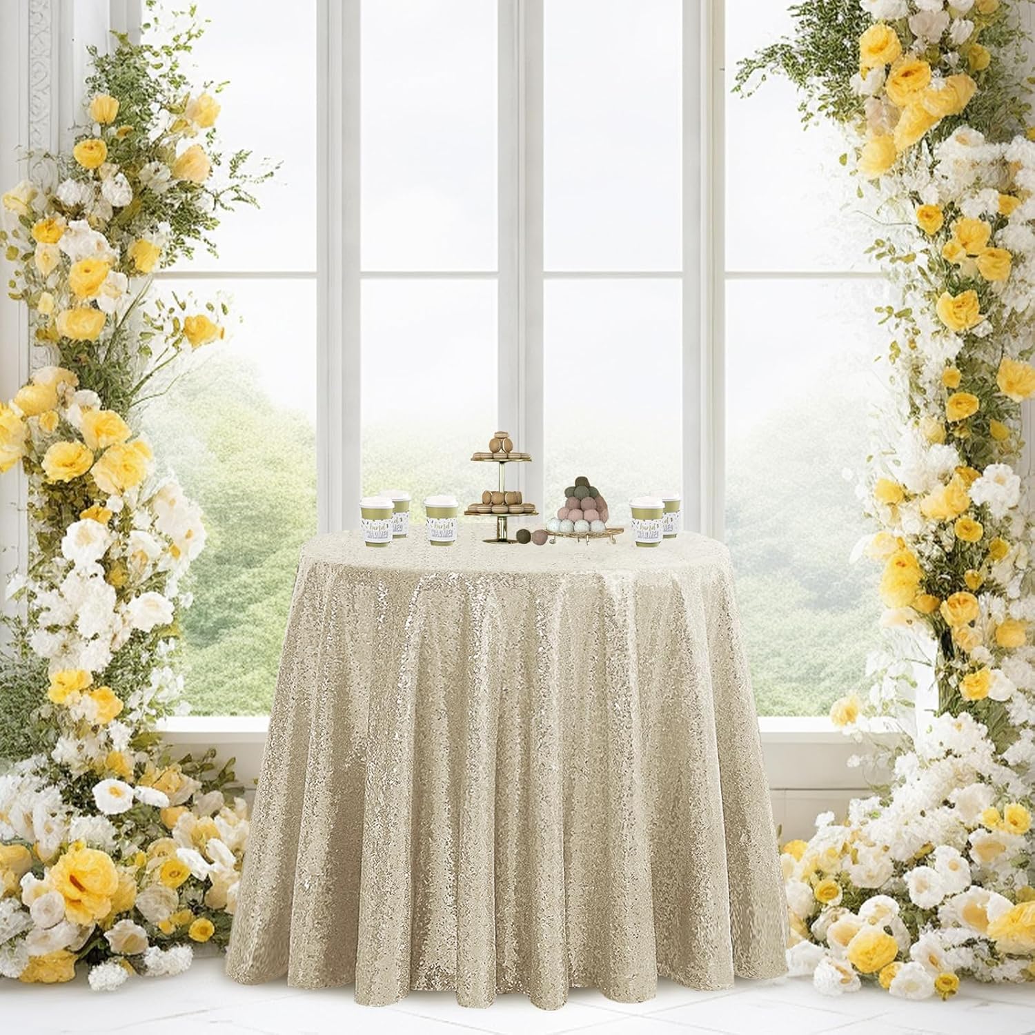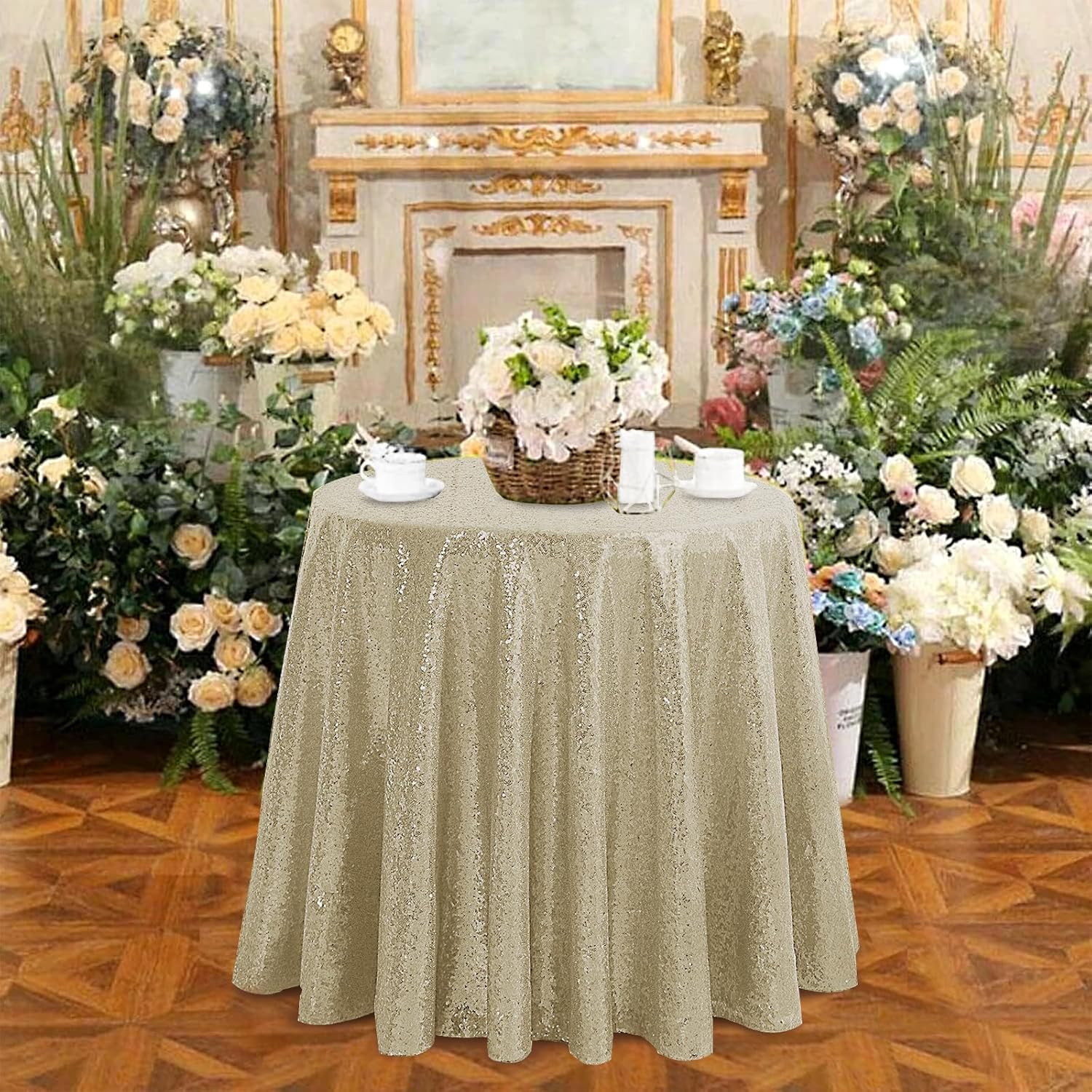 • Package Include: Your package will include 1 round champagne tablecloth measuring 50 W by 50 L inch. These sparkly table tablecloths are ideal for wedding, event table decorations for the reception.