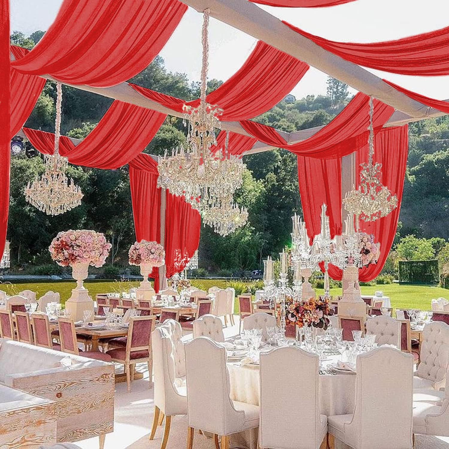 • ⭐Size & Color - Wedding Ceiling Drapes: Our red ceiling drapery contains 6 panels. Each panel is 5FT width x20FT length. Wedding arch drapes is long enough creating a great eye catching detail in wedding party events decor.