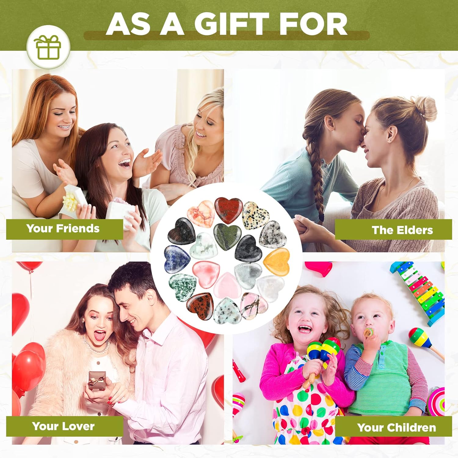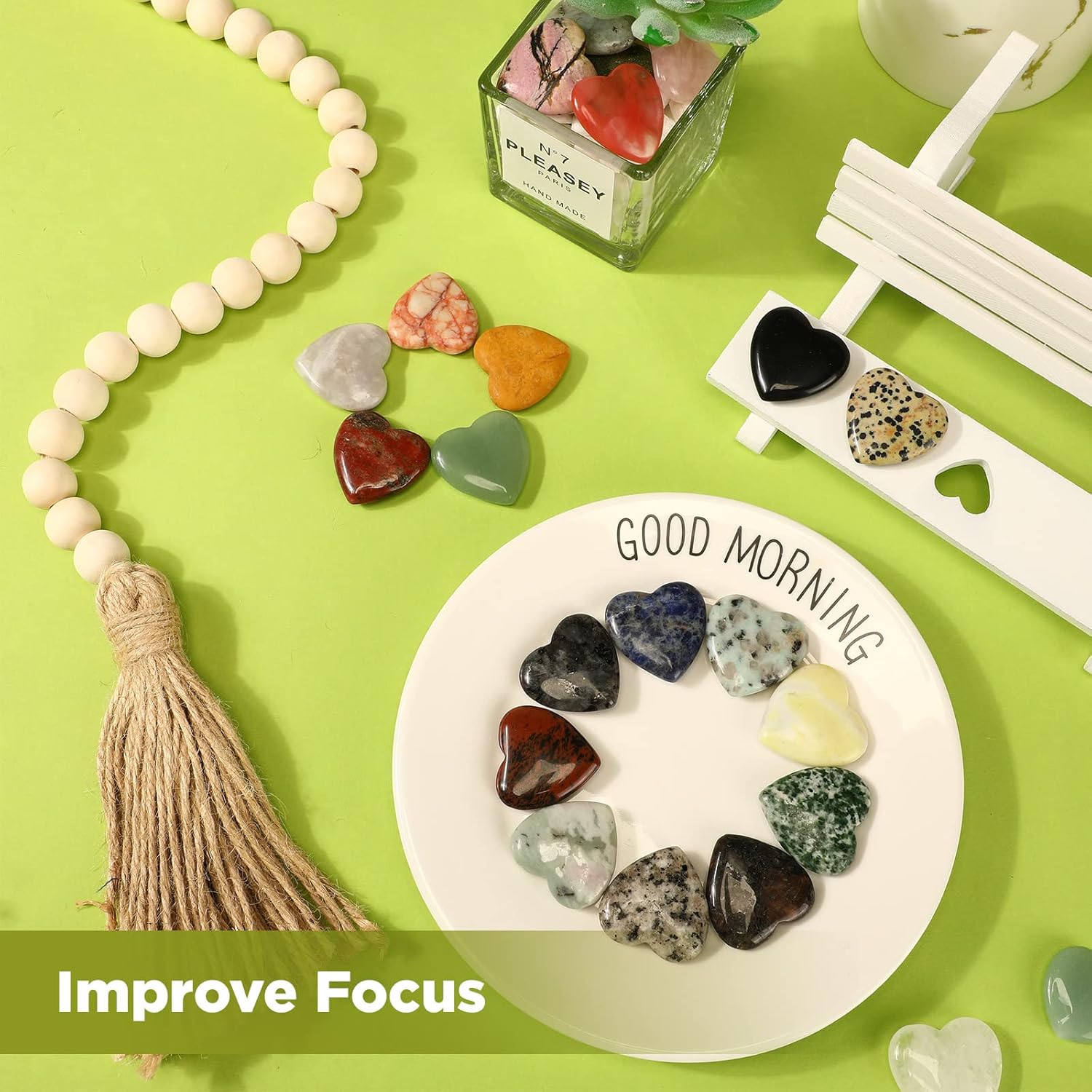 Nuenen 30 Pcs Heart Shape Crystals Bulk 1.2 Inch Gemstone Heart Worry Stone Love Rocks Quartz Wholesale Love Pocket Palm for Christmas Stress Relief Witchcraft Women Gift (Classic Color)