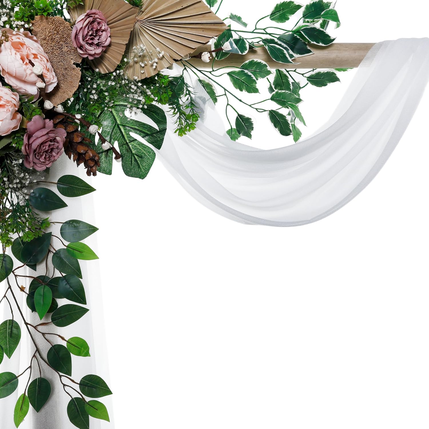 VDS Pack of 1 Panel (30 Inch X 20 Feet) Wedding Arch Draping Fabric Sheer Chiffon Fabric Drapery for Wedding Ceremony Reception Swag Backdrop Canopy Chuppah ARBO Altars Decoration (White)