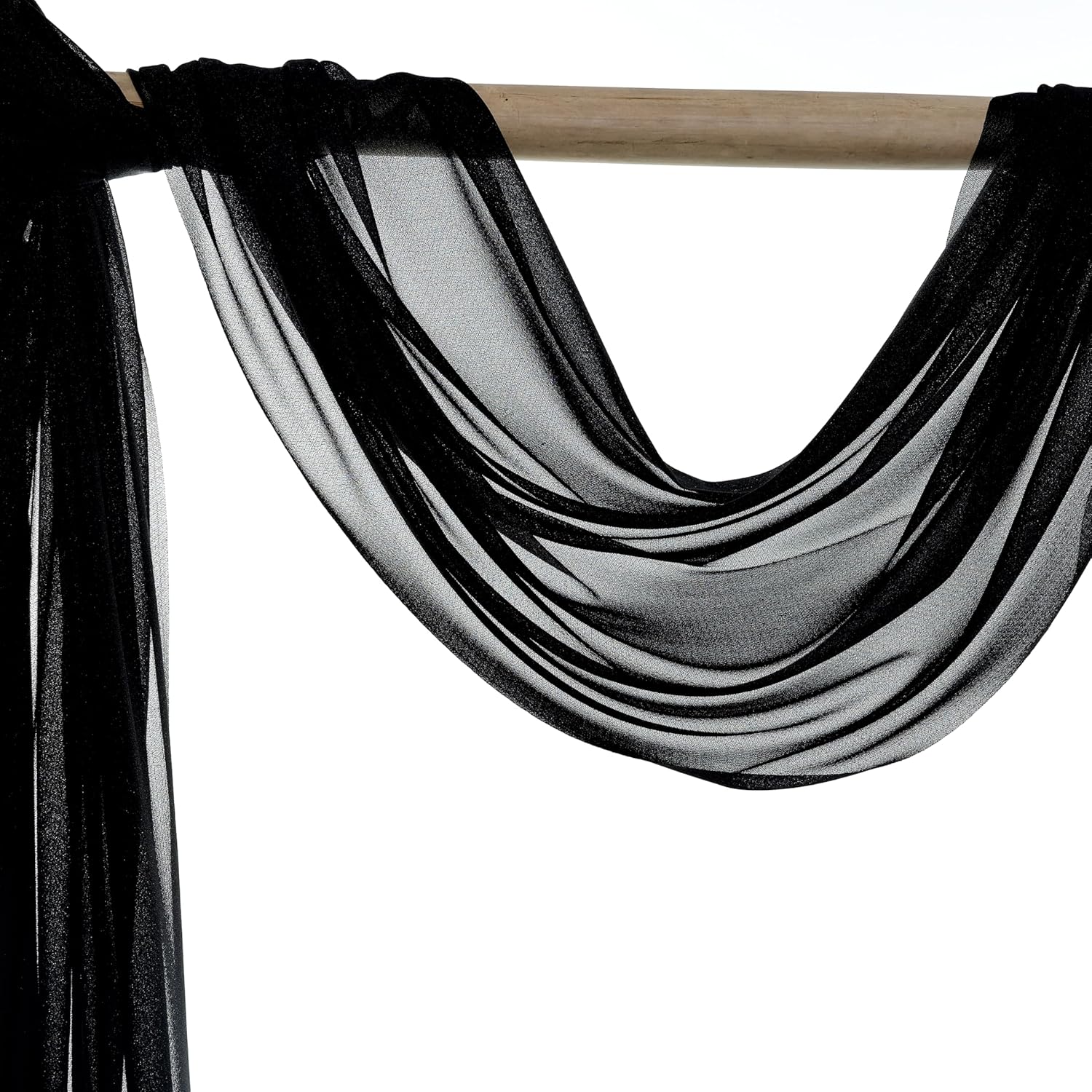 VDS Pack of 1 Panel (30 Inch X 20 Feet) Wedding Arch Draping Fabric Sheer Chiffon Fabric Drapery for Wedding Ceremony Reception Swag Backdrop Canopy Chuppah ARBO Altars Decoration (Black)