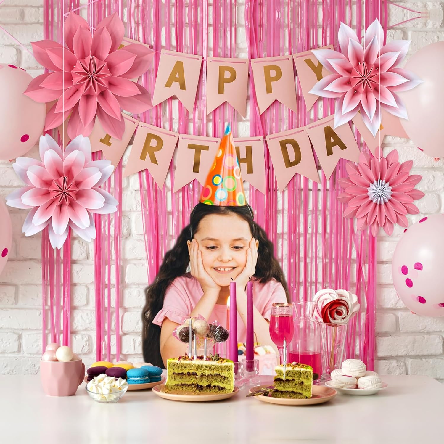 • 【Package contents】Hanging paper flower fan party decorations set of 4 15.7/11.8/11.8/9 inch pink paper flowers. Create a gorgeous visual display for your home and delicate flowers create a stunning backdrop for your party