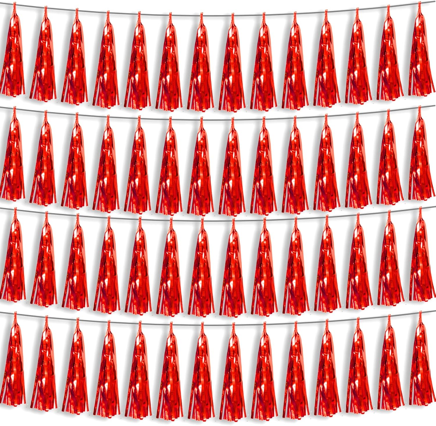 4P Red Foil Fringe Metallic Tassel Streamers Banner Tassel Garland for Parade Floats, Bachelorette, Wedding, Birthday, Halloween, Christmas, Bridal/Baby Shower Party Decorations