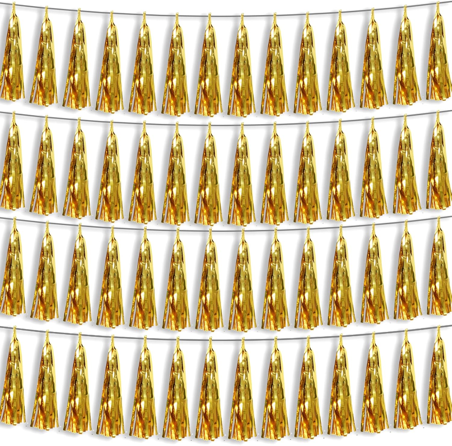 • 【Reusable Tassel Garland Material】: high-quality metallic foil tassel garlands, with the virtue of nice craftsmanship and lightweight, they are reusable and safe, and not easy to fade; They come with white ribbon for hanging, and garland tassels hang perpendicular to the string, and are adjustable to provide you with the option of spreading the tassels out or piecing them closer together.