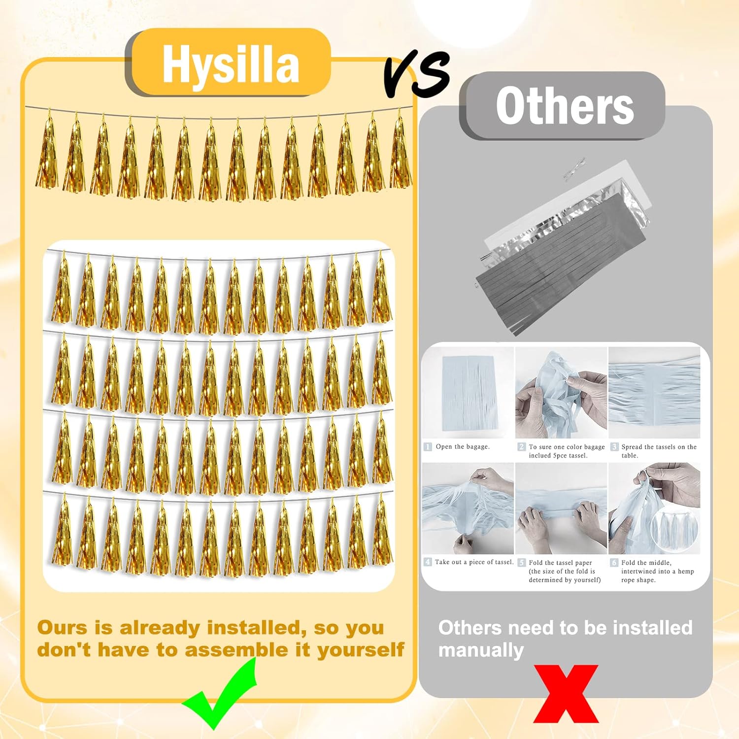 • 【Perfect Party Decoration】The gold tinsel garlands are designed in a metallic Fringe, bright, and beautiful, at the same time, they shine in the sun, and these gorgeous tassel garlands create a wonderful backdrop or centerpiece for your party space. and bring you, your family, and your friend's good Visual effects. your party many emotional and touching moments where a lot of pictures will be taken and everybody will have a wonderful time together.