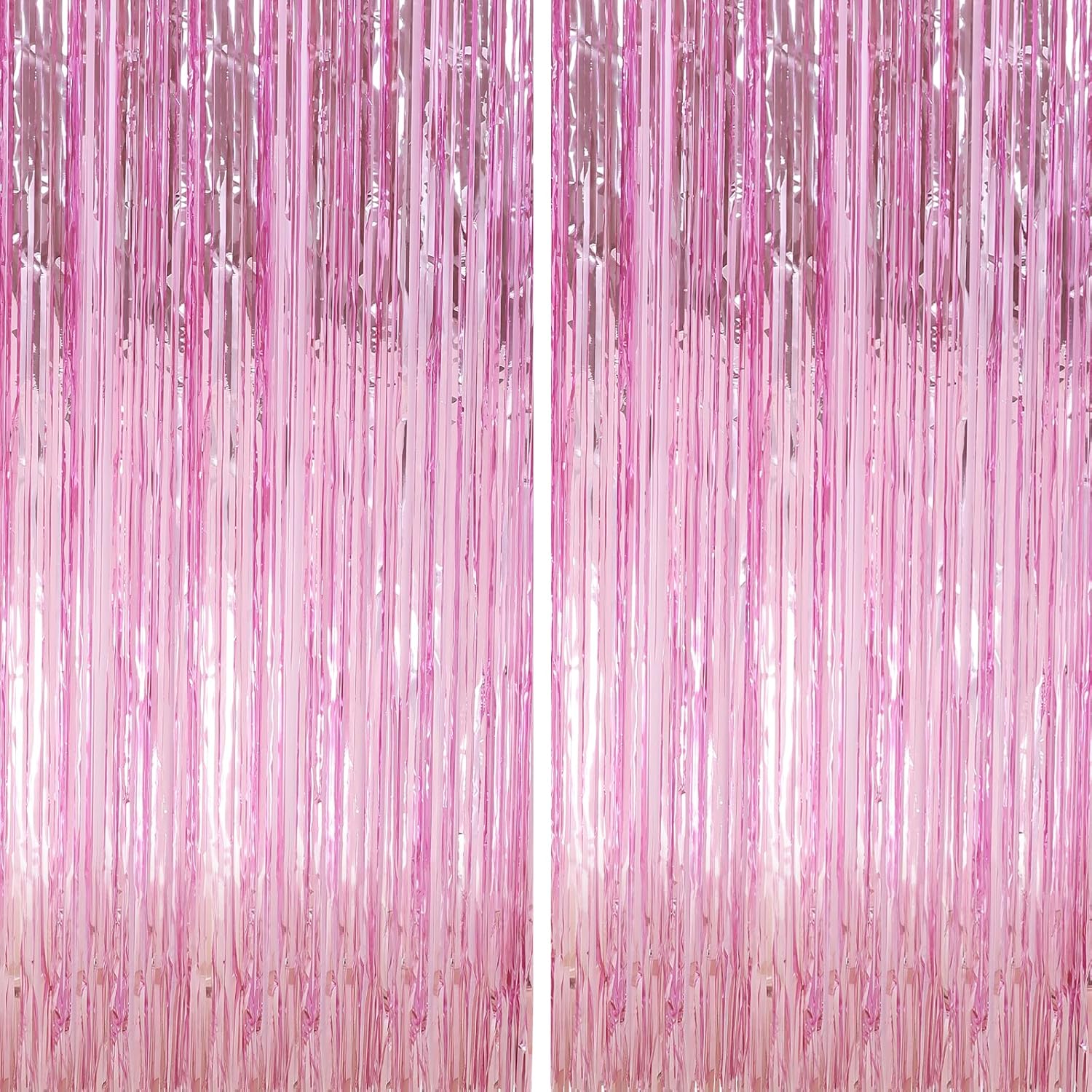 Crosize 2 Pack 3.3 x 9.9 ft Pink Foil Fringe Backdrop Curtain, Streamer Backdrop Curtains, Streamers Birthday Party Decorations, Tinsel Curtain for Parties, Galentines Decor, Preppy, Photo Booth