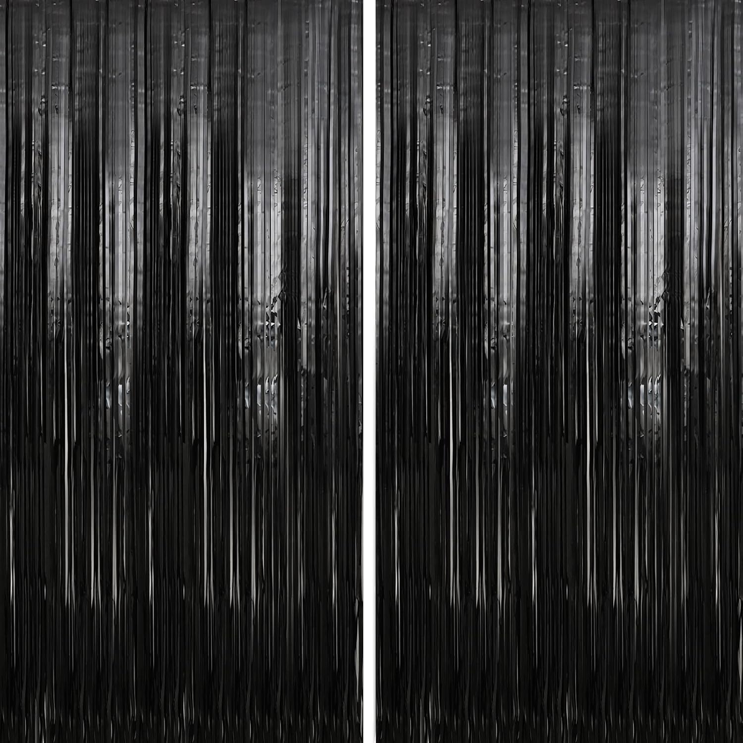 Crosize 2 Pack 3.3 x 9.9 ft Black Foil Fringe Backdrop Curtain, Streamer Backdrop Curtains, Streamers Birthday Party Decorations, Tinsel Curtain for Parties, Photo Booth Backdrops, Party Décor
