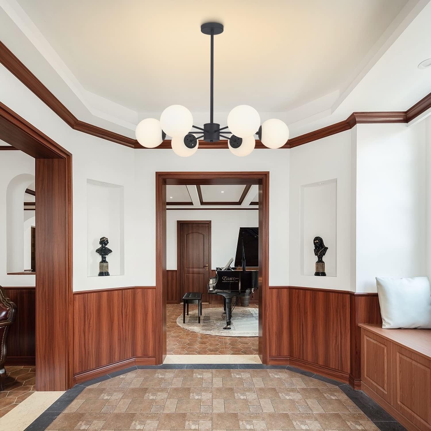 • Mid Century Globe Sputnik Chandelier: The dining room chandelier with 6 classic milk glass lampshade and vintage matte black metal body design, which brings a modern sense to its vintage style and presenting an elegant and atmospheric texture to your home, gives you a feeling of superior and stylish