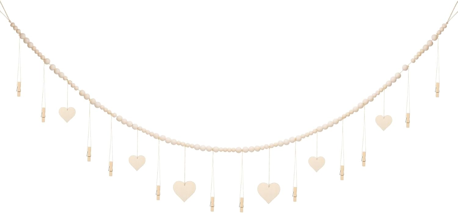 joycraft 5Ft Photo Banner with Clips, Photo Garland with Wooden Beads, Photo Clip String, Boho Photo Display for Bedroom, Office, Dorm, and Party Decor(11Pcs Clips + 6Pcs Wooden Heart Tags)