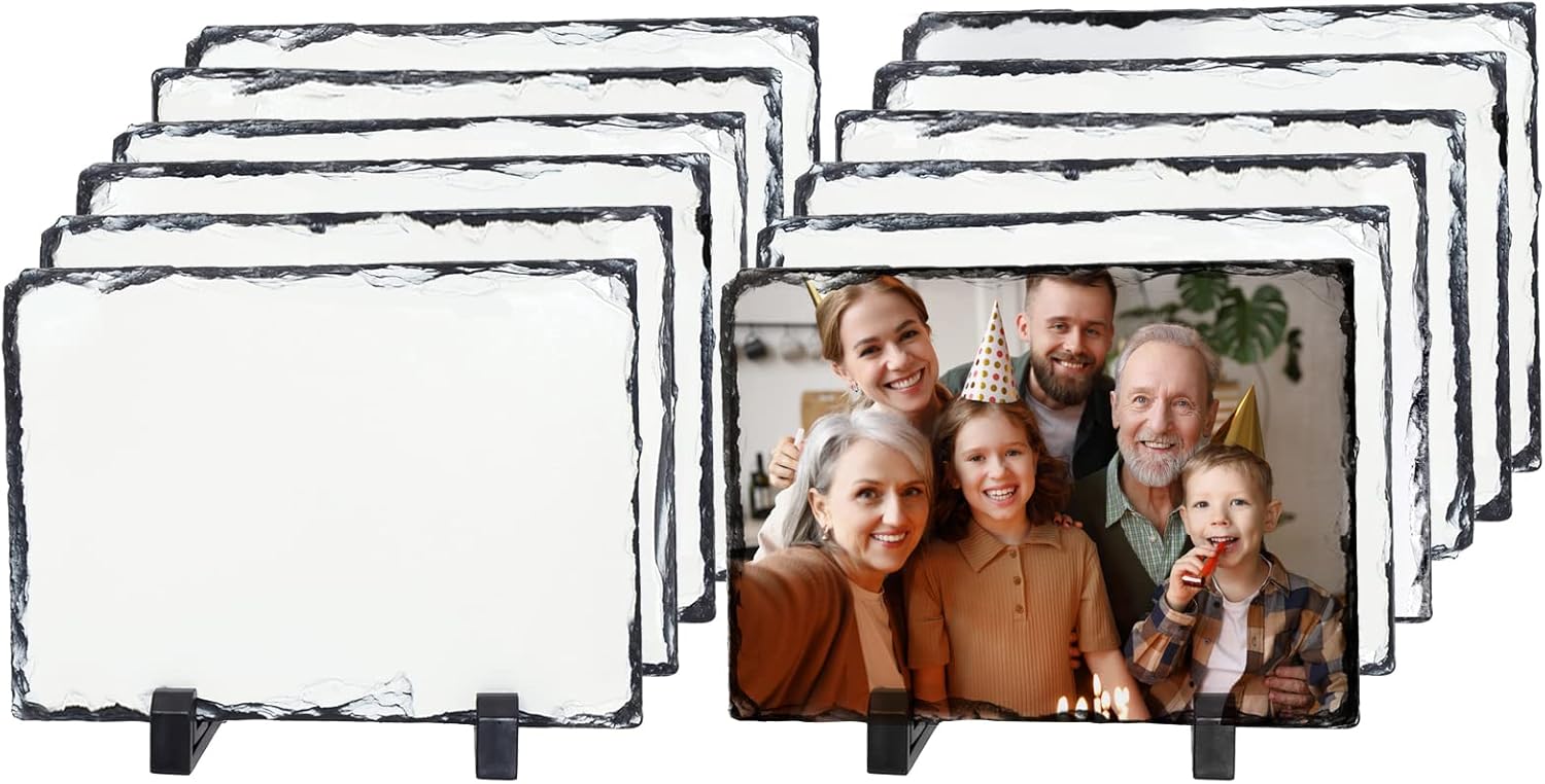 • Specification:The sublimation photo slate blanks is 5.5 x 7.5 inch,come with an individual box and display holder each piece,12 pieces per pack.