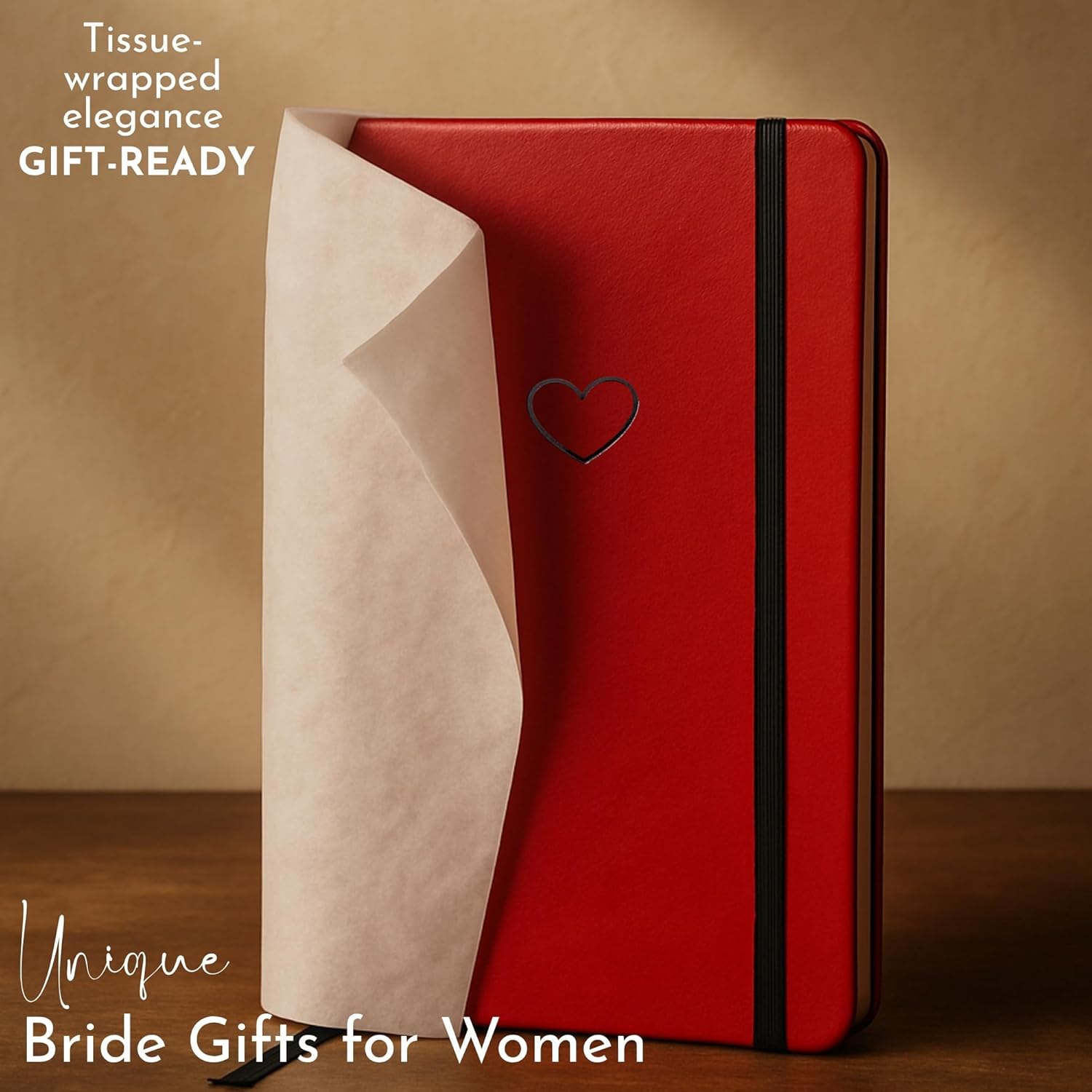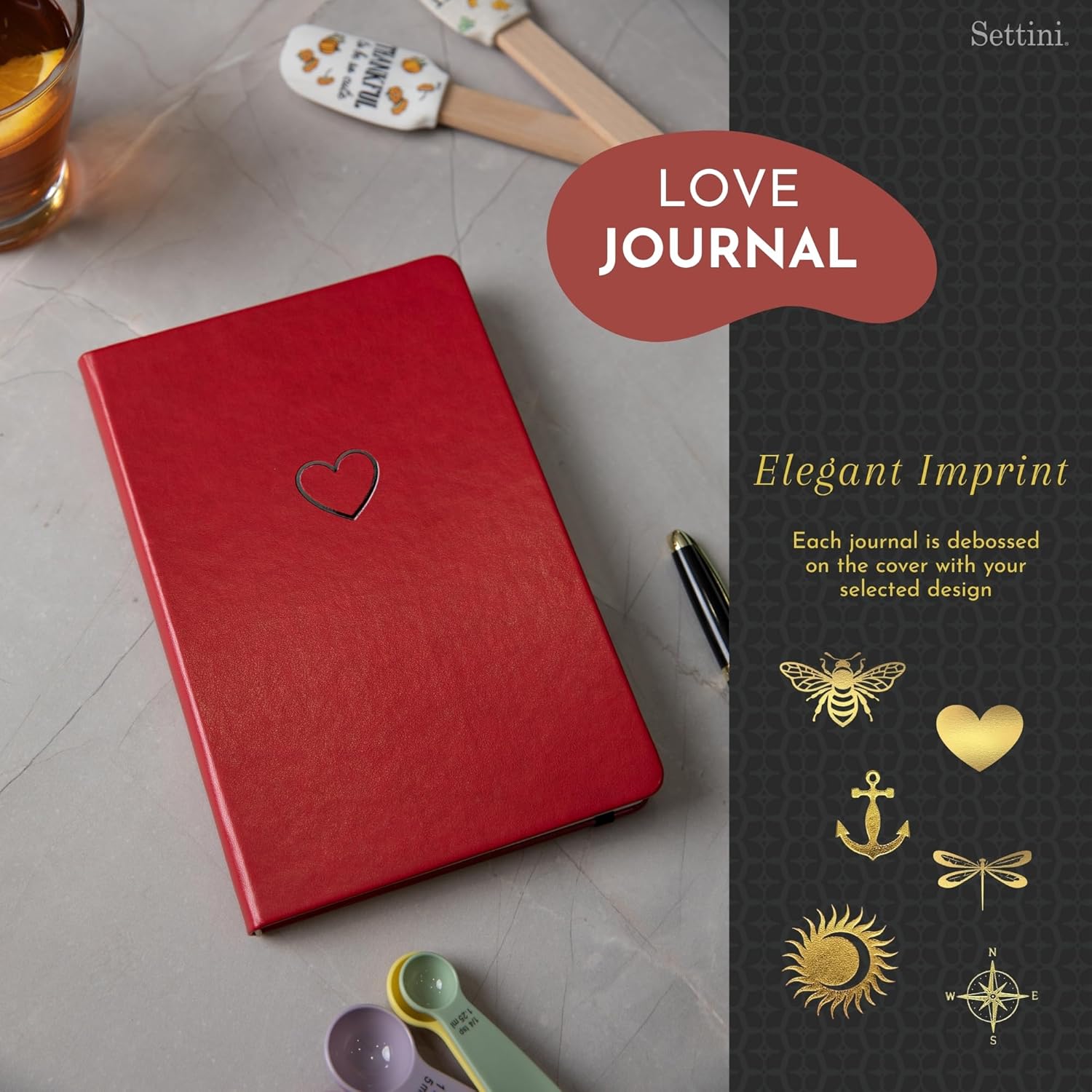SETTINI Lined Journal, Ideal for Journaling - A5 Vegan Leather Notebook, 192 Archival-Quality Pages, QuillEase Bleed-Free Paper, Inner Pocket & Bookmark - Love Journal for Women, Red Heart