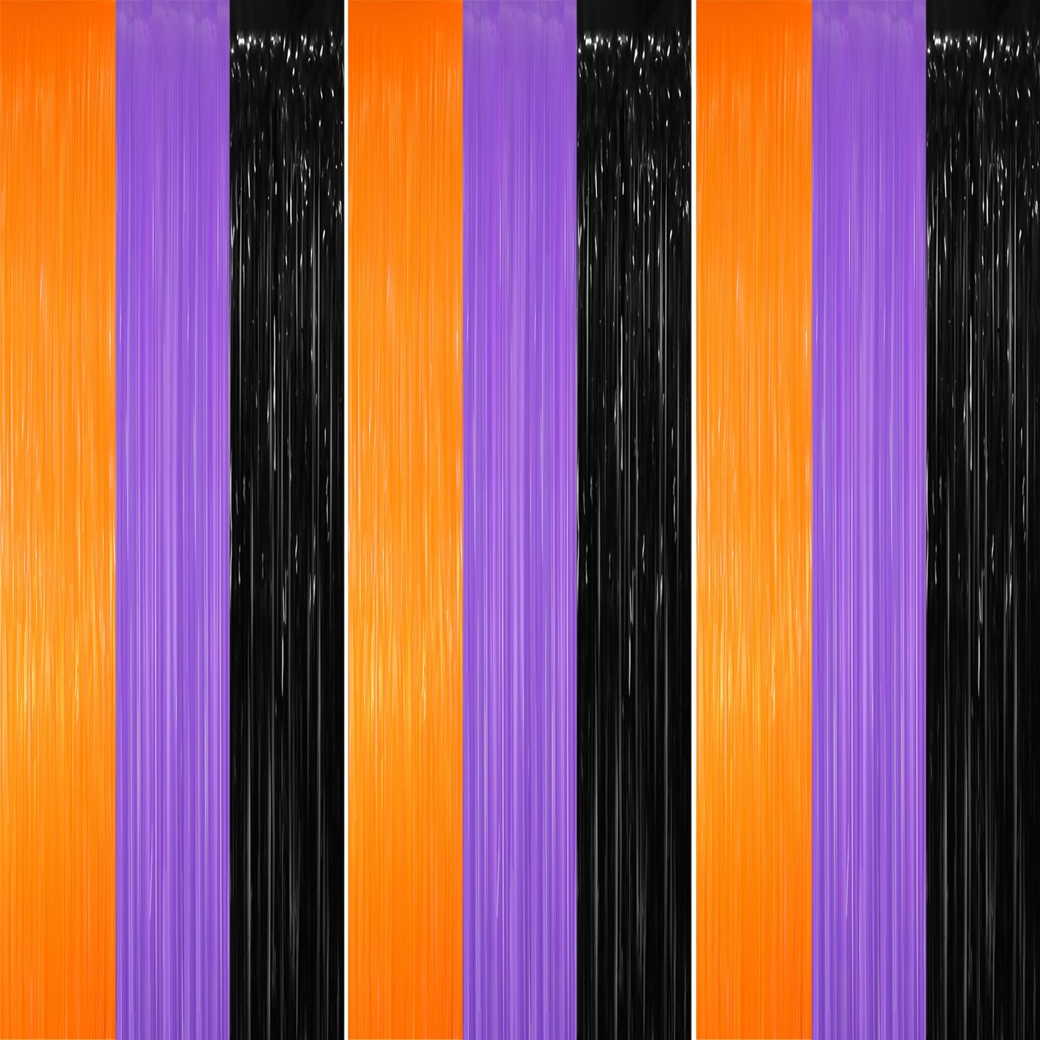 • Package Includes:3 Packs Black&Orange&Purple Foil Fringe party backdrop