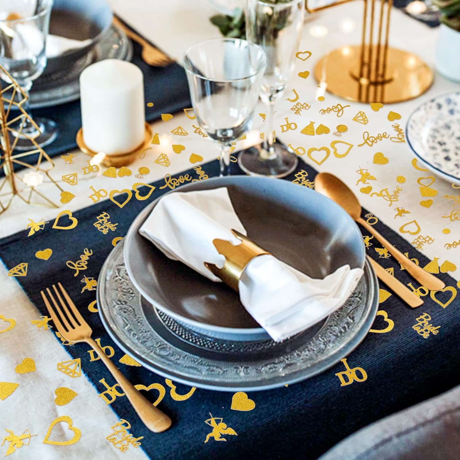 • 【High Quality Material】These table sactters are made of gold glitter paper(only one side is gold color the other side is white color)