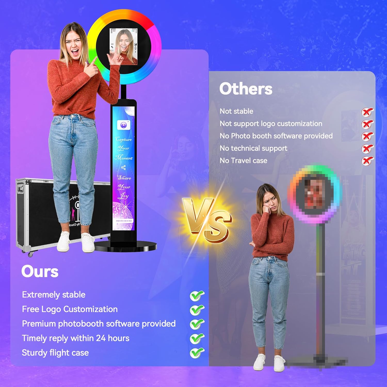 • 【Why Choose lPad photo booth】The photo booth rental market is projected to grow at a rate of over 10% per year, this ipad photo booth machine can earn and rent it for double the price of a regular photo booth kiosk. Why not to make money by this photo booth ?