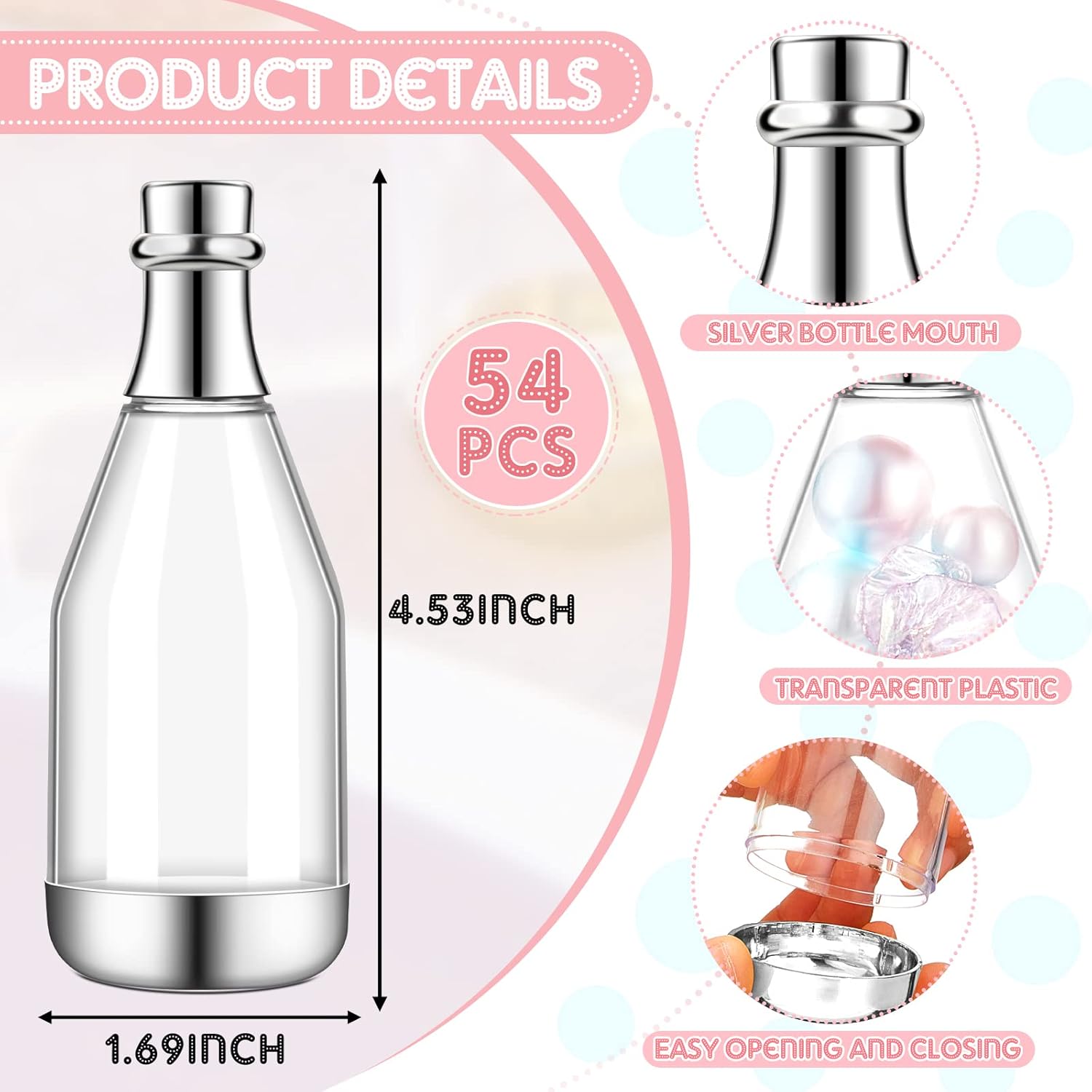 Cunhill 54 Pieces Champagne Candy Bottles Bridal Shower Favors Mini Baby Bottle for Baby Shower Bulk Small Plastic Wine Alcohol Containers for Wedding Birthday Party(Silver)