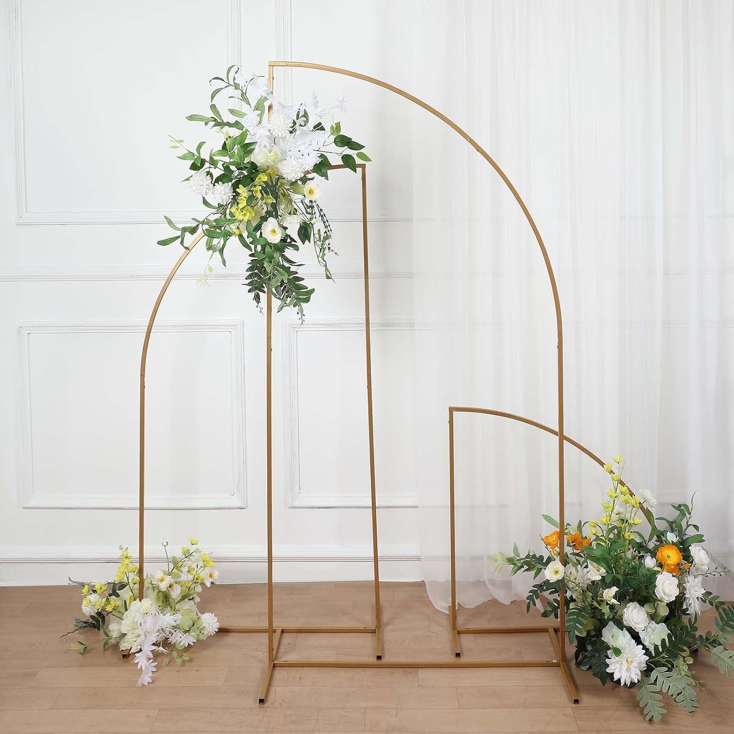 Tableclothsfactory 6ft Gold Metal Wedding Arch Chiara Backdrop Stand, Half Moon Floral Frame Arbor Display