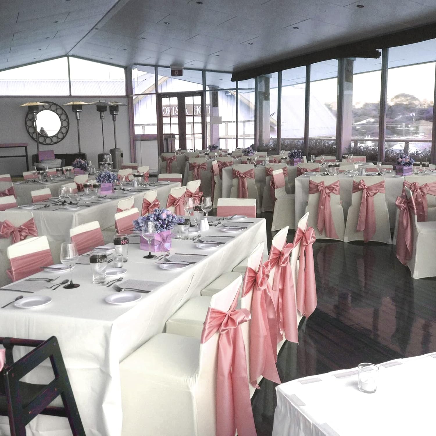 • 🌸【Package Include】Pack of 120 satin chair sash.Size: 7" x108" or 275cm(l) x 17cm(w).Each package includes chair sashes only, without chair covers.These chair ties bring a modern twist to your chair's settings and let your chairs sparkle brightly. Satin sashes can be tied into wedding chairs, draped across any decoration, or used as attractive table runners.