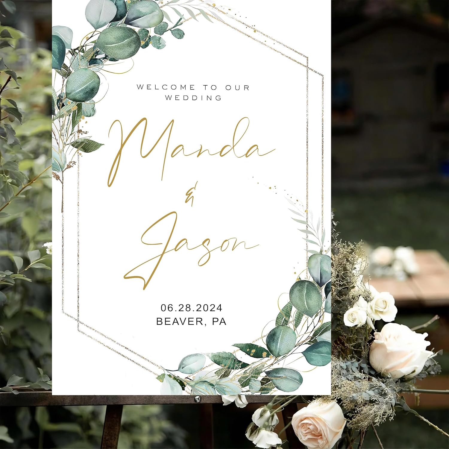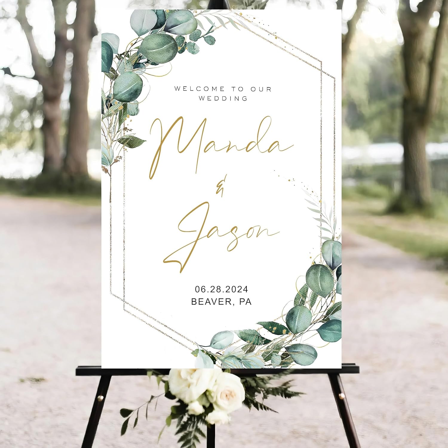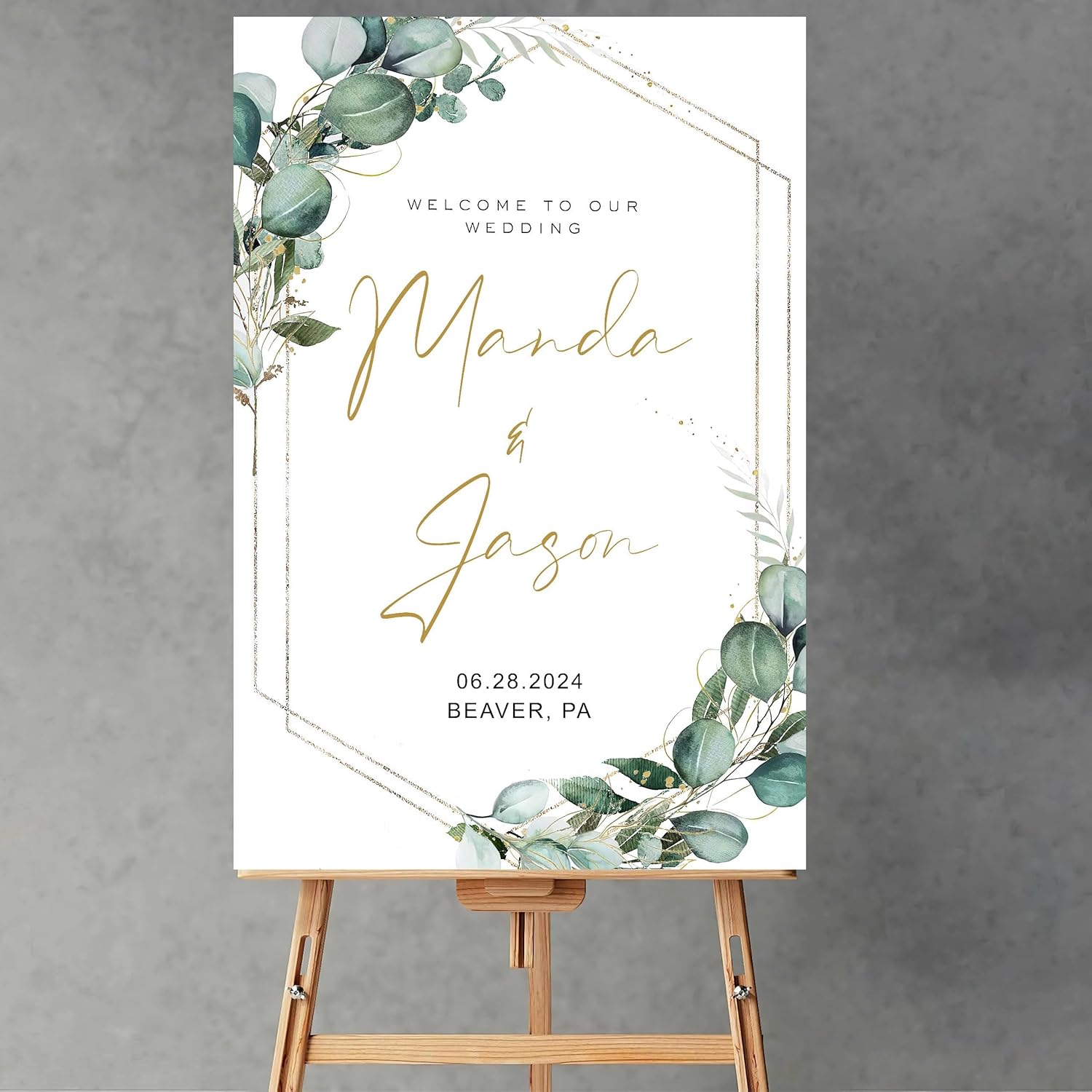 Generic Greenery Wedding Welcome Sign, 18x27 inches, Plastic, Modern Geometric