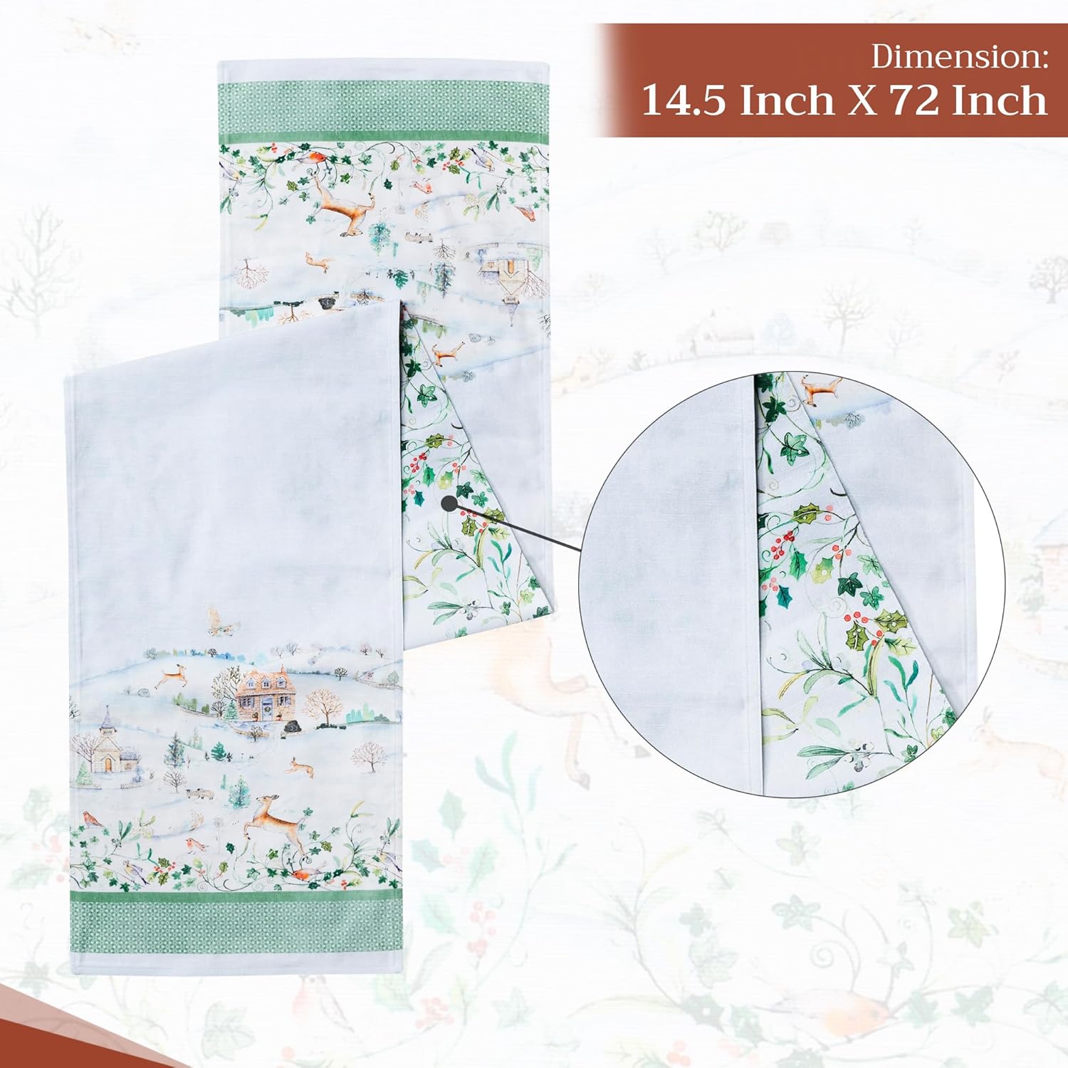 • Unique Design: Inspired by Europe, featuring exquisite watercolor artwork where each design embodies over 120 hours of hand-painted artistry. The rich hues and fine detailing make this tablerunner perfect for holiday tables, fall decor, Thanksgiving decorations, or festive Christmas decorations