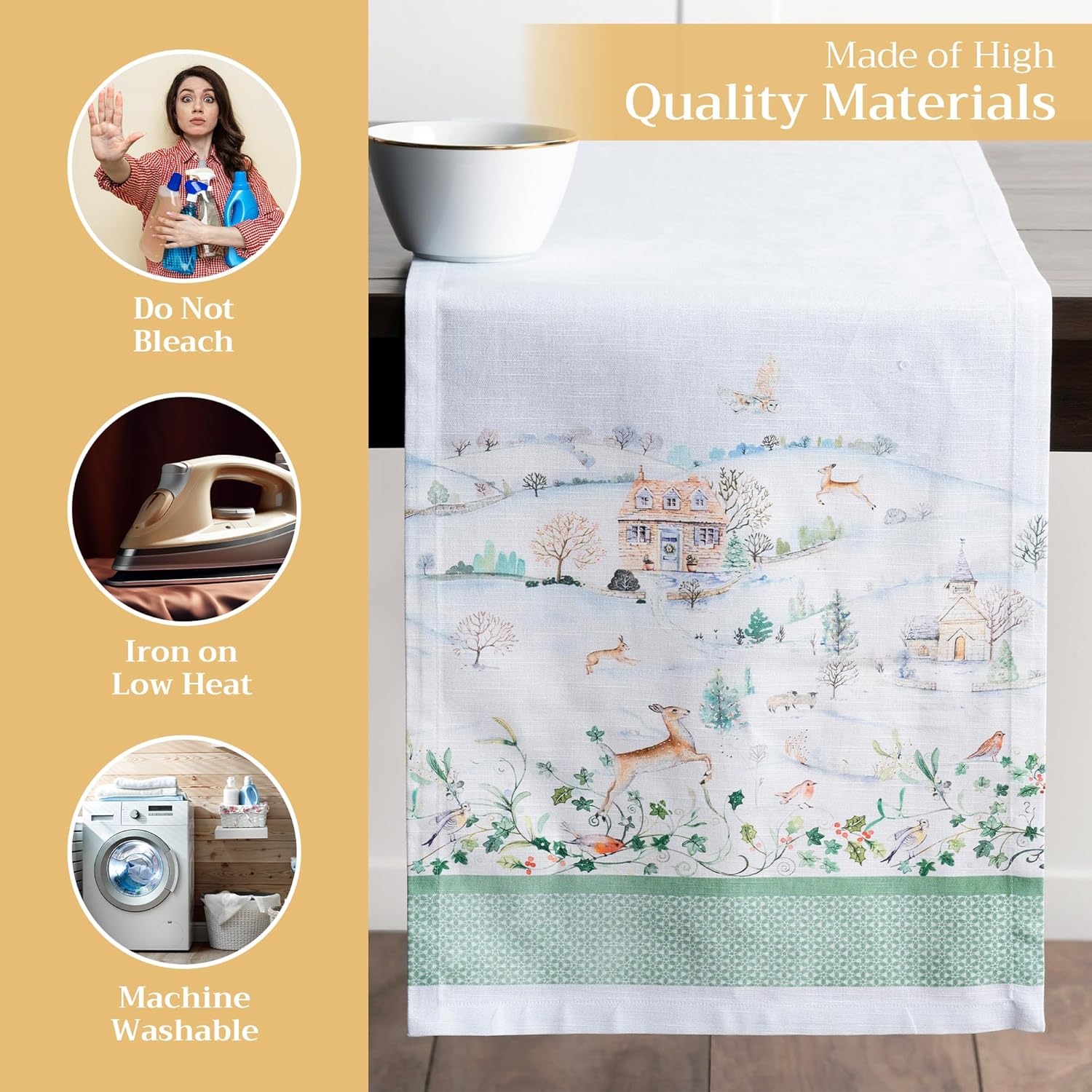 • Enhance Your Home: Crafted from 100% cotton, this reusable table runner adds a warm, seasonal touch to your dining decor. Ideal for Thanksgiving, Halloween decorations, or Christmas decorations—pair it with matching linens for an elegant fall or holiday gift