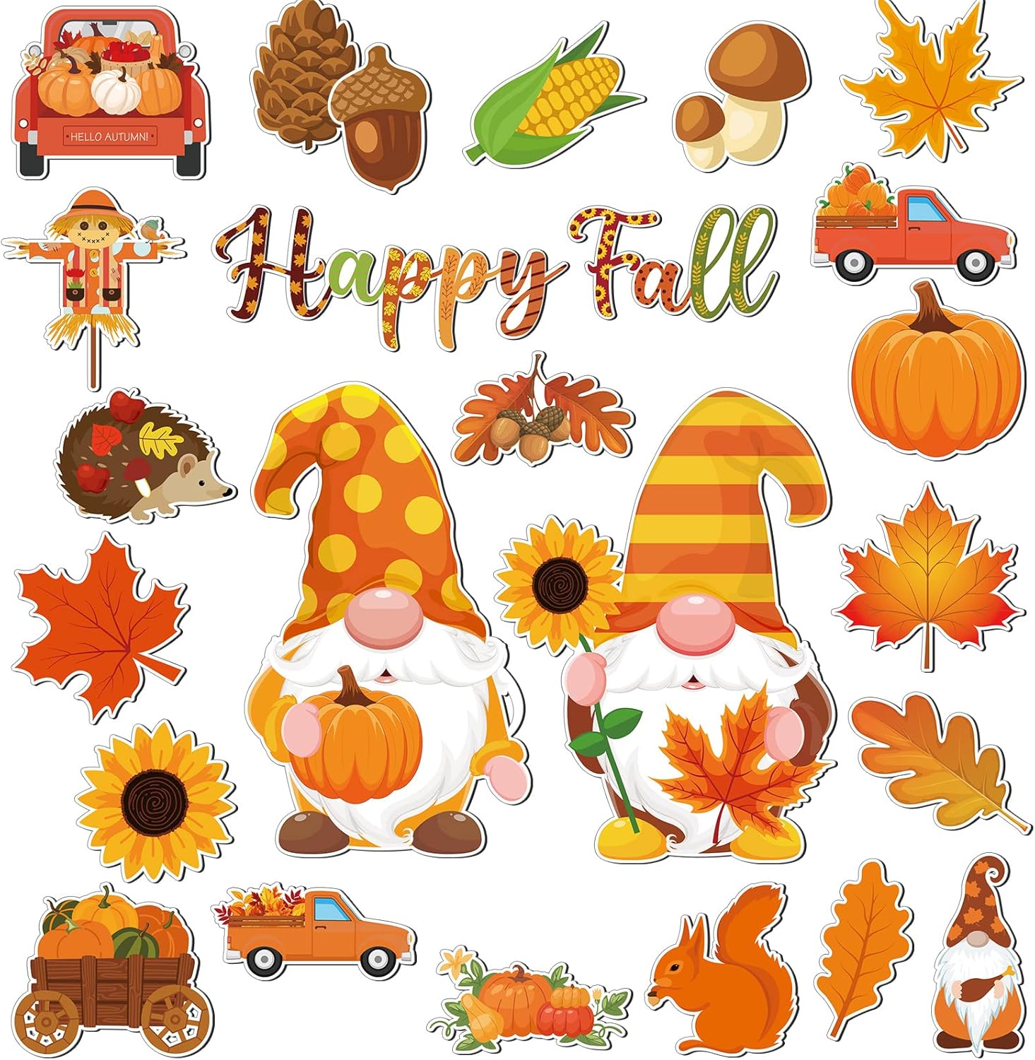 25 Pieces Happy Fall Magnets Gnome Pumpkin Fridge Magnets Fall Theme Car Refrigerator Decals Holidays Magnetic Stickers Autumn Leaves Acorn Thanksgiving Harvest Decoration