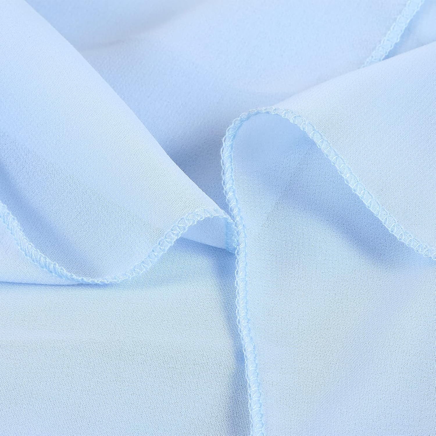 • ๐Ÿ’ก Baby Blue Table Skirt Material: The extra long chiffon table skirt is made of Sheer Chiffon which is wrinkle-free, soft, and with a nice drapery. Table skirt both robust for kids birthday party supplies and elegant if used for wedding decoration.