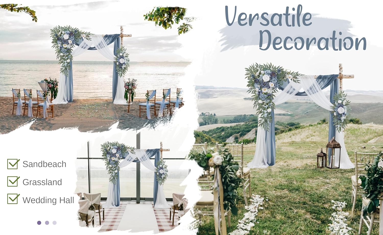 Wedding Arch Flowers with Drapes Kit (Pack of 4) - 2pcs Artificial Dusty Blue Deluxe Swag with 2pcs Sheer Drapes for Wedding Ceremony Arbor Reception Backdrop Rose Floral Decoration
