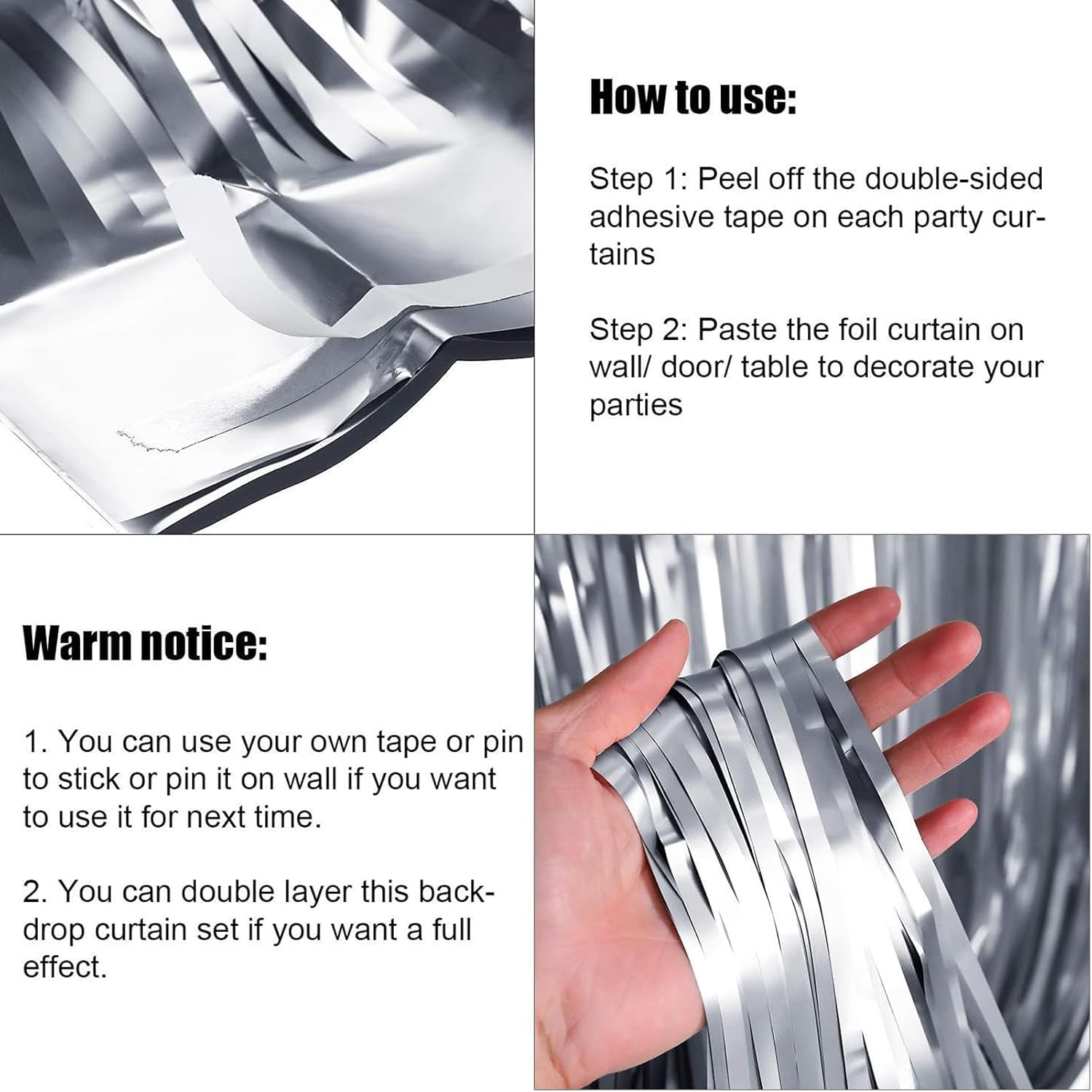 • Party Streamers Size - The 4 pack streamers curtain size is 6.56Ft(Length) X 3.28Ft(Width). The fringe backdrops are perfect to make an elegant entrance curtain for your party decorations.