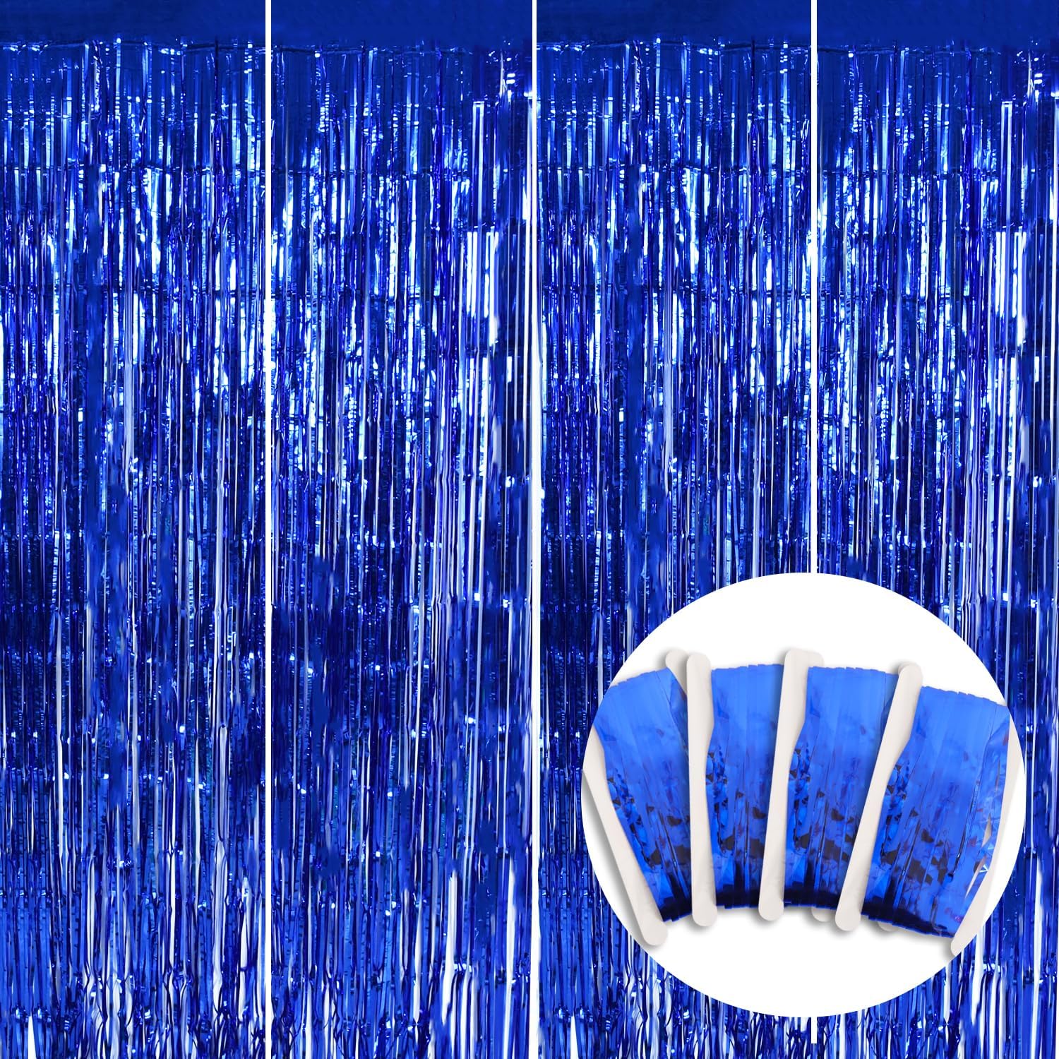 • Blue Party Streamers Size - The 4 pack streamers curtain size is 6.56Ft(Length) X 3.28Ft(Width). The fringe backdrops are perfect to make an elegant entrance curtain for your party decorations.