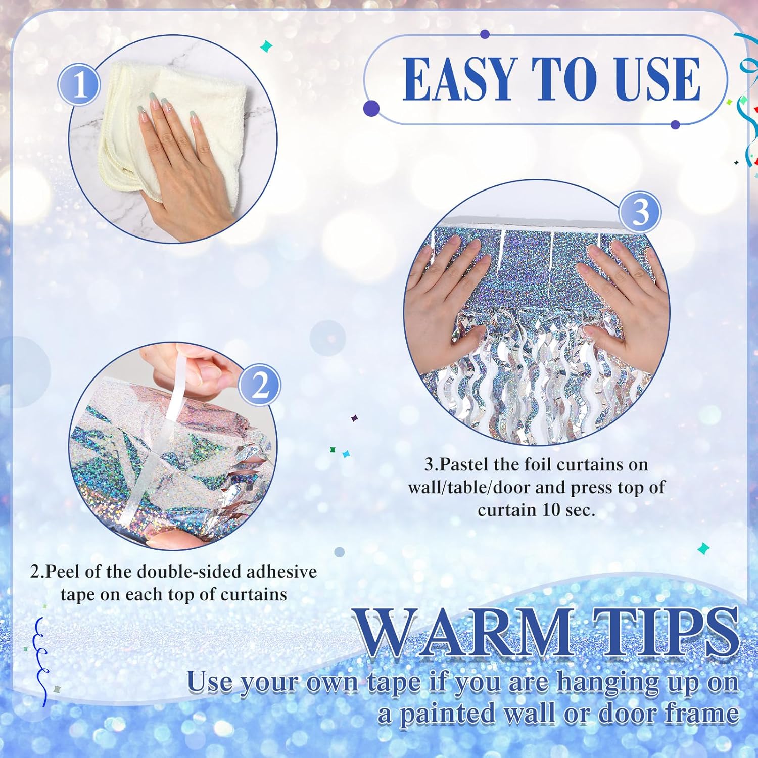 • Suitable Size: each silver tinsel backdrop measures about 3.3 feet/ 1 meter wide and 6.6 feet/ 2 meters long, long enough for you to decorate your wall, window, door and other places you want