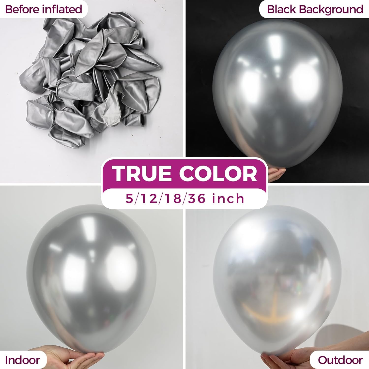 • 【Metallic Silver Themed Party】- Chrome silver large balloons can be used in silver themed party or mix with any color to create a perfect silver themed wedding, bridal shower, birthday, anniversary, Christmas and any themed party inside or outside, which makes your party more special.