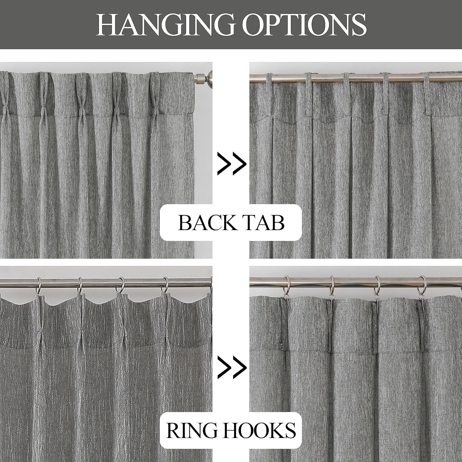 • Pinch Pleats Design:Each dark grey curtain panel with 7 pinch pleats generates modern and luxury feel.Hanging these pinch curtains to elevate your windows and increase the aesthetic value to any spaces,like bedroom,living room,nursery,office,etc.
