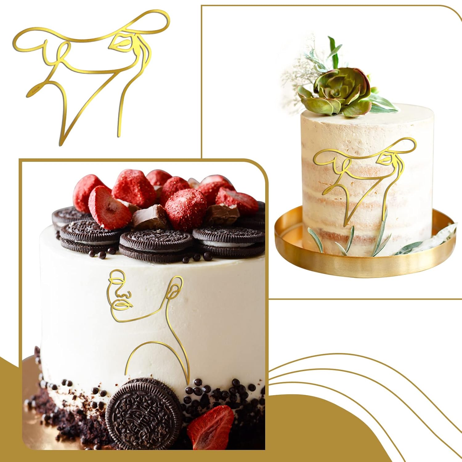 Kigley 22 Pcs Minimalist Art Lady Face Cake Topper Butterflies Cake Decoration Acrylic Wedding Birthday Boho Cake Toppers for Women Bridal Shower Party Supplies (Gold)