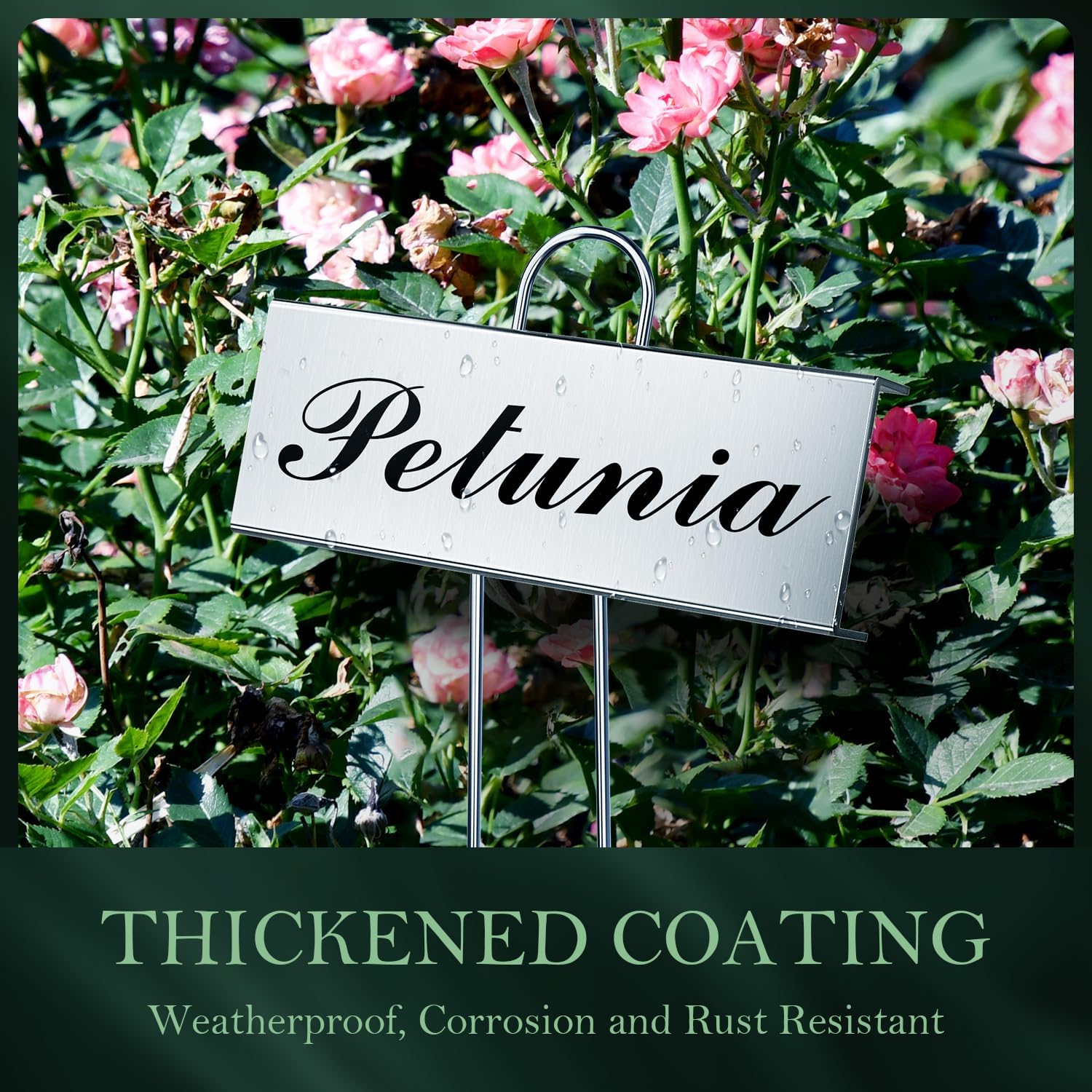 • Attractive Design: Not only are these plant labels practical, but they also add a touch of elegance to your garden. The sleek metal design complements any outdoor space, giving it a polished and organized look. Use these markers to create a well-organized garden or to add a decorative touch to your potted plants.