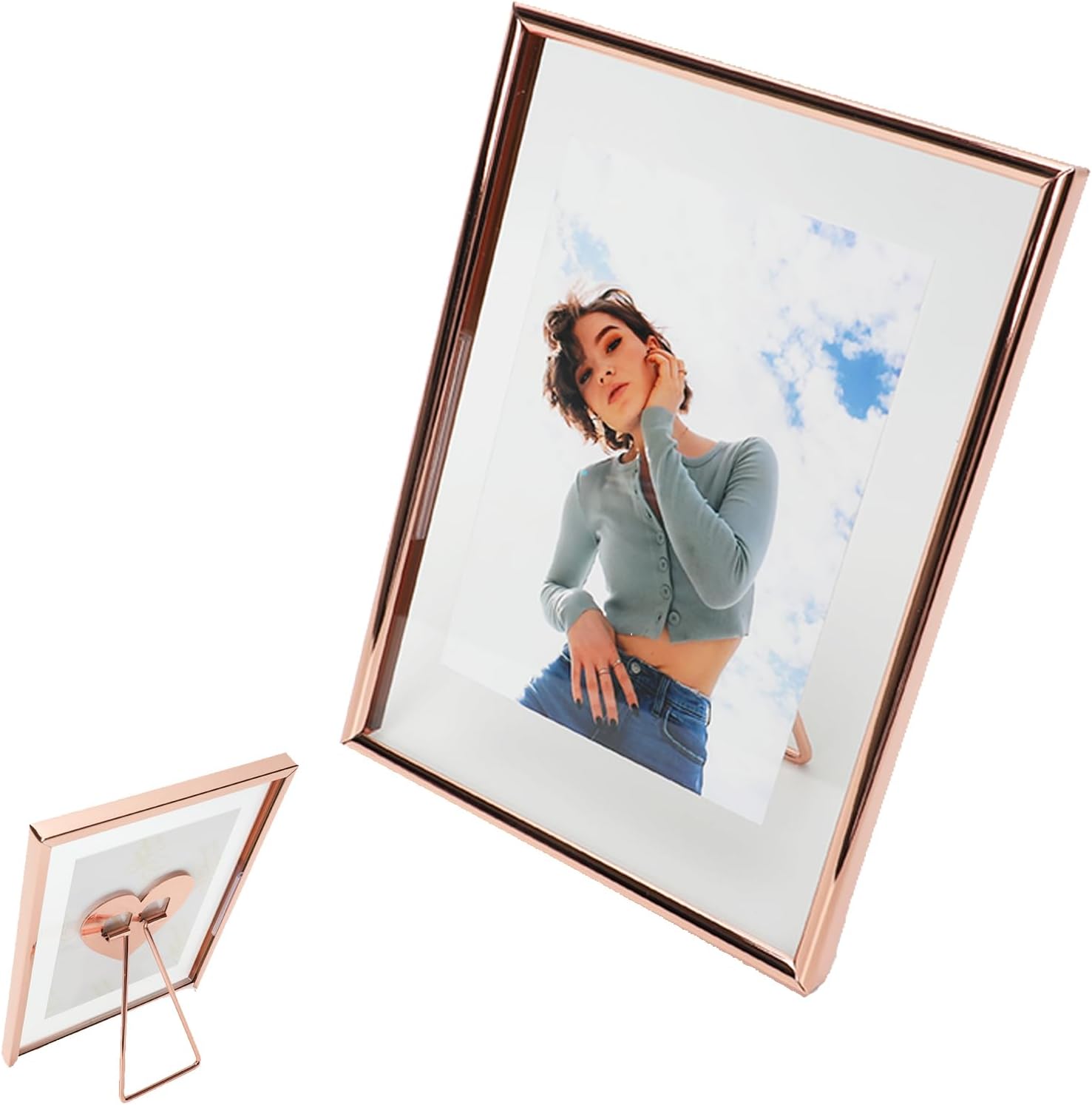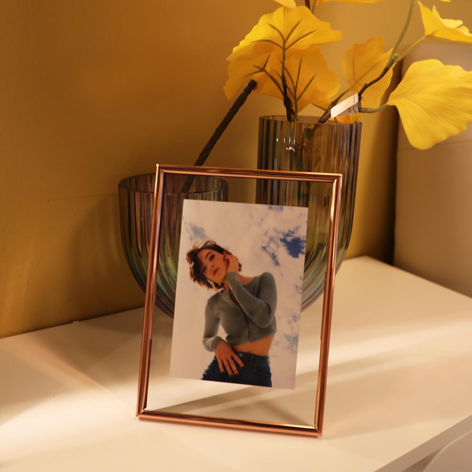 • 【Romantic Design】A rose gold metal frame with heart-shaped stand(Put you in my heart) and transparent glass, making it looks very romantic and elegant. It appears that the photo has a floating effect on it, So you can focus on the photo.