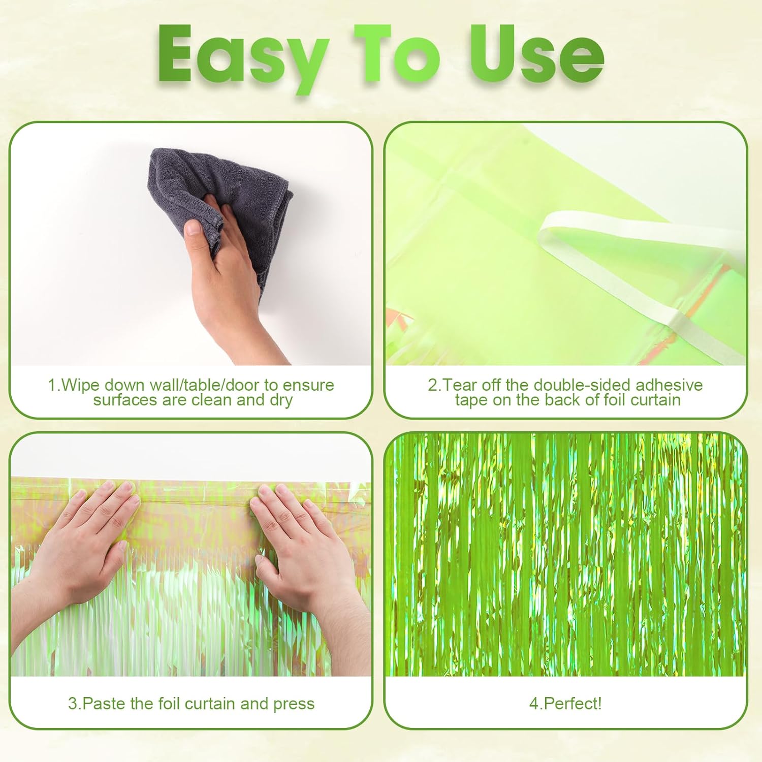 • Premium Material: This Neon Green foil curtain backdrop is made of stable tinsel, non-fading, stay shiny and reusable. Unfold it and then enjoy your glittering party