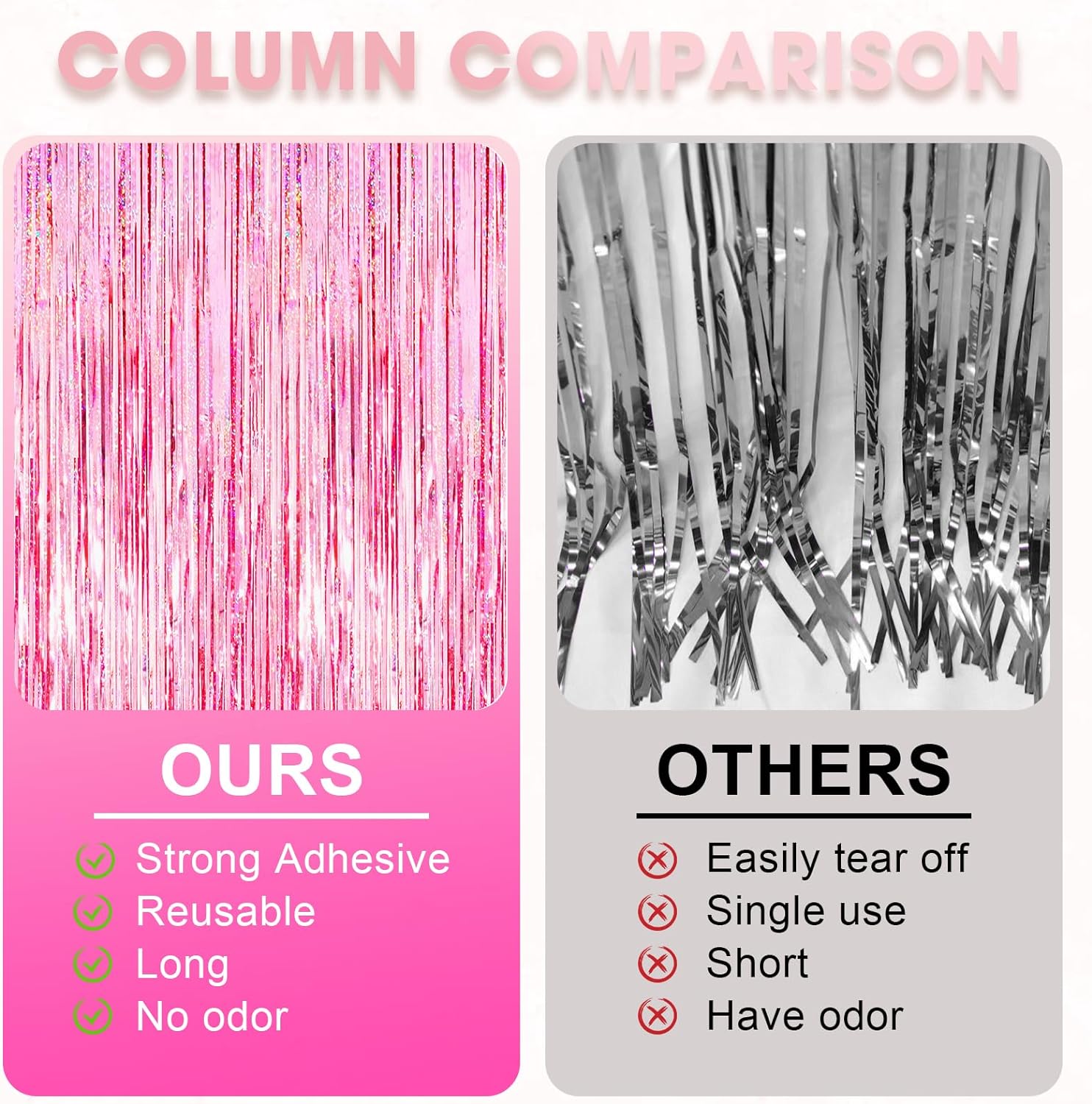 • Premium Material: This Laser Pink foil curtain backdrop is made of stable tinsel, non-fading, stay shiny and reusable. Unfold it and then enjoy your glittering party