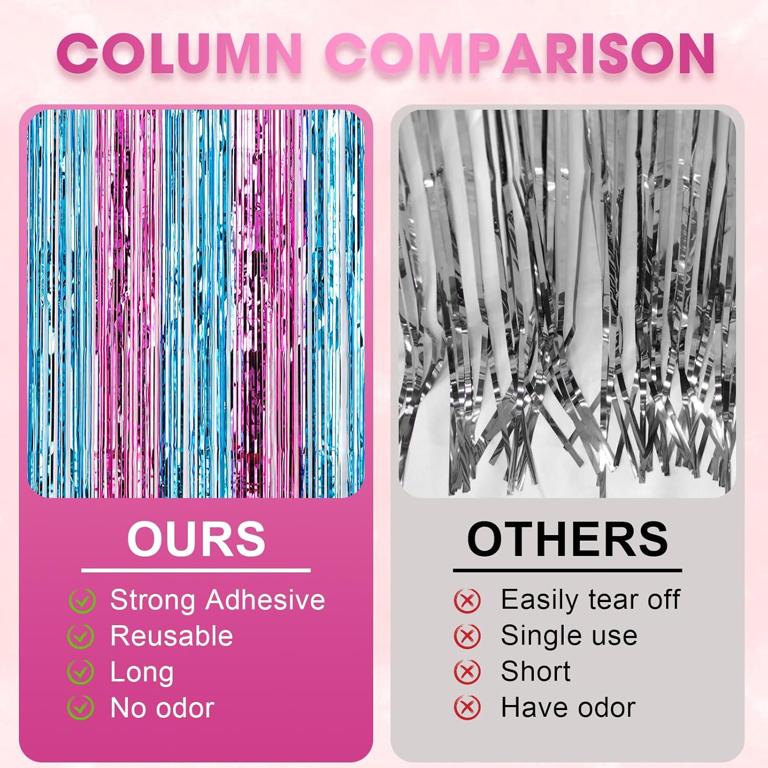 • Premium Material: This Blue and Pink foil curtain backdrop is made of stable tinsel, non-fading, stay shiny and reusable. Unfold it and then enjoy your glittering party