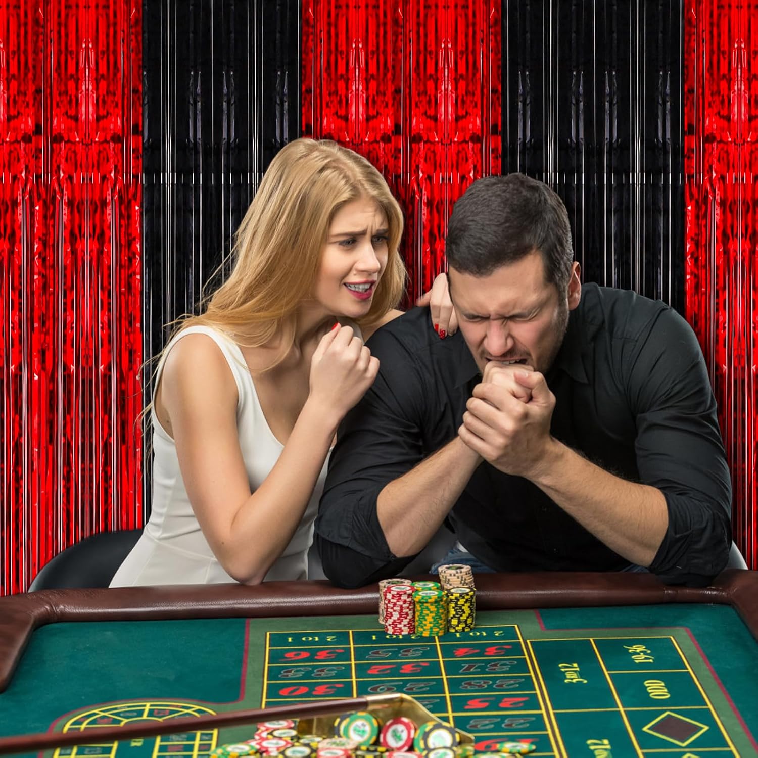 • Premium Material: This Red and Black foil curtain backdrop is made of stable tinsel, non-fading, stay shiny and reusable. Unfold it and then enjoy your glittering party