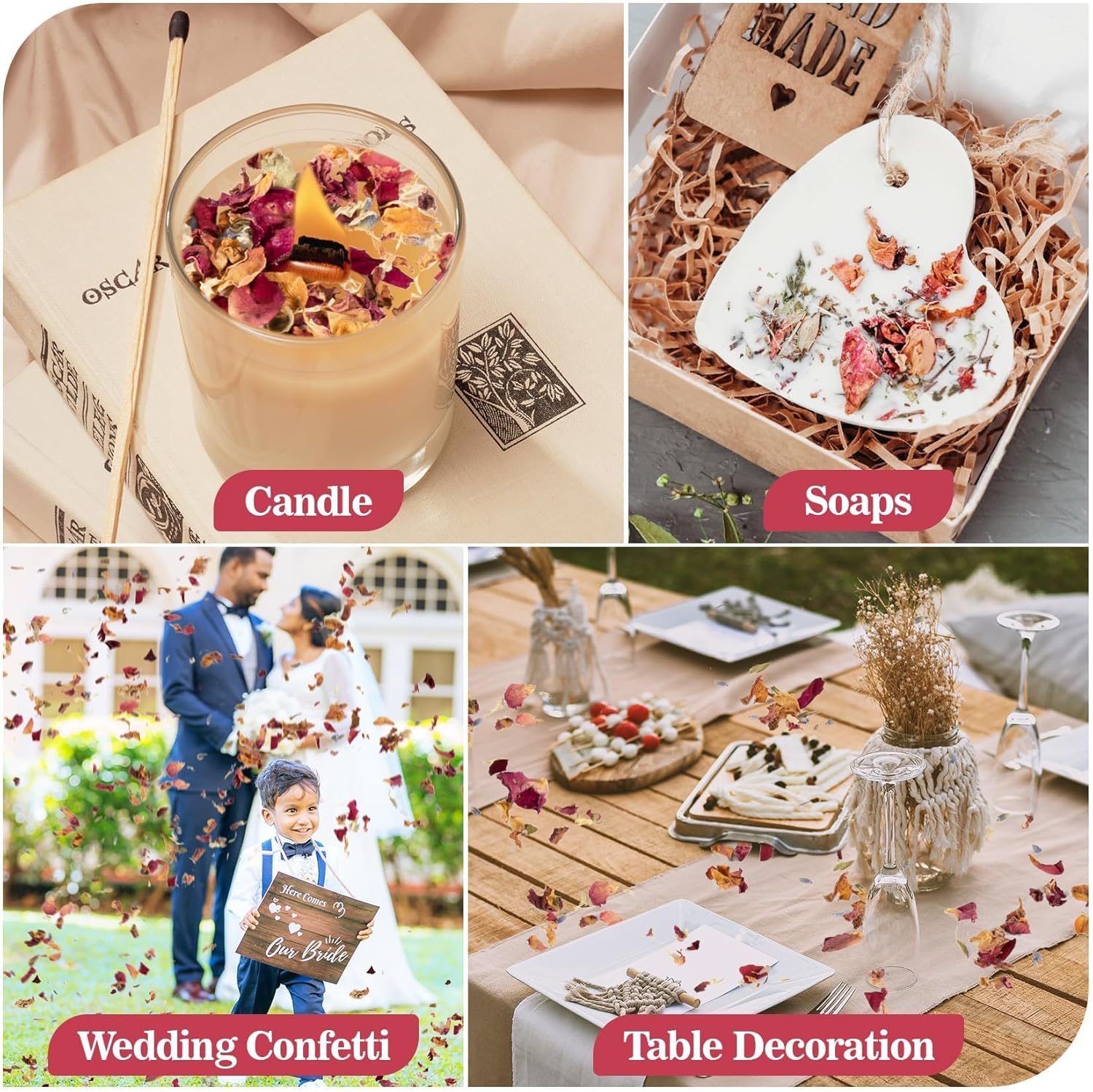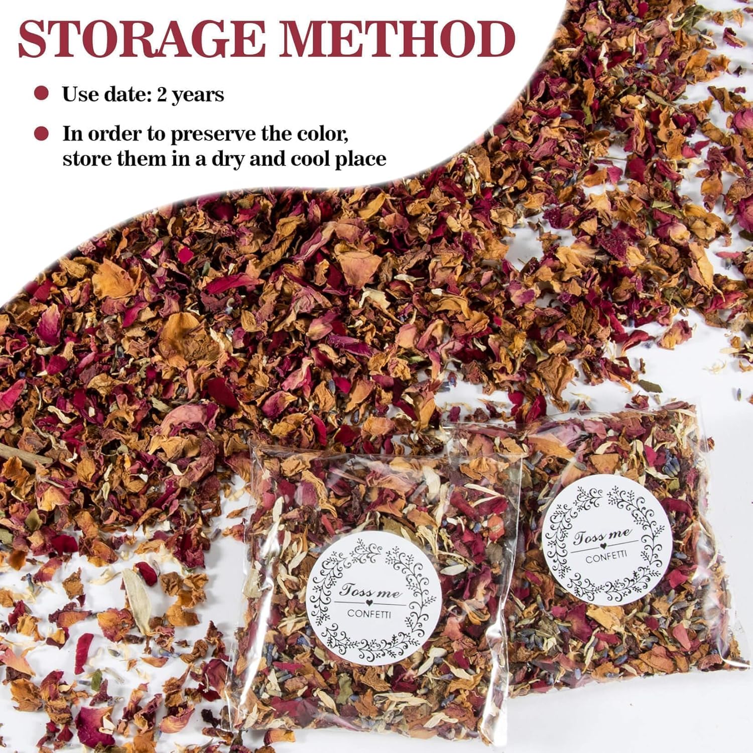 • Suitable for DIY & Versatile Use:It works perfectly as wedding confetti for wedding showers, and is also ideal for anniversary/birthday/Christmas decorations (such as table centerpieces, home decor, and gift wrapping). Beyond festive decor, it doubles as a DIY material for handmade soaps, candles, resin crafts, sachets, dried flower paintings, and more, fully meeting diverse decorative and creative needs