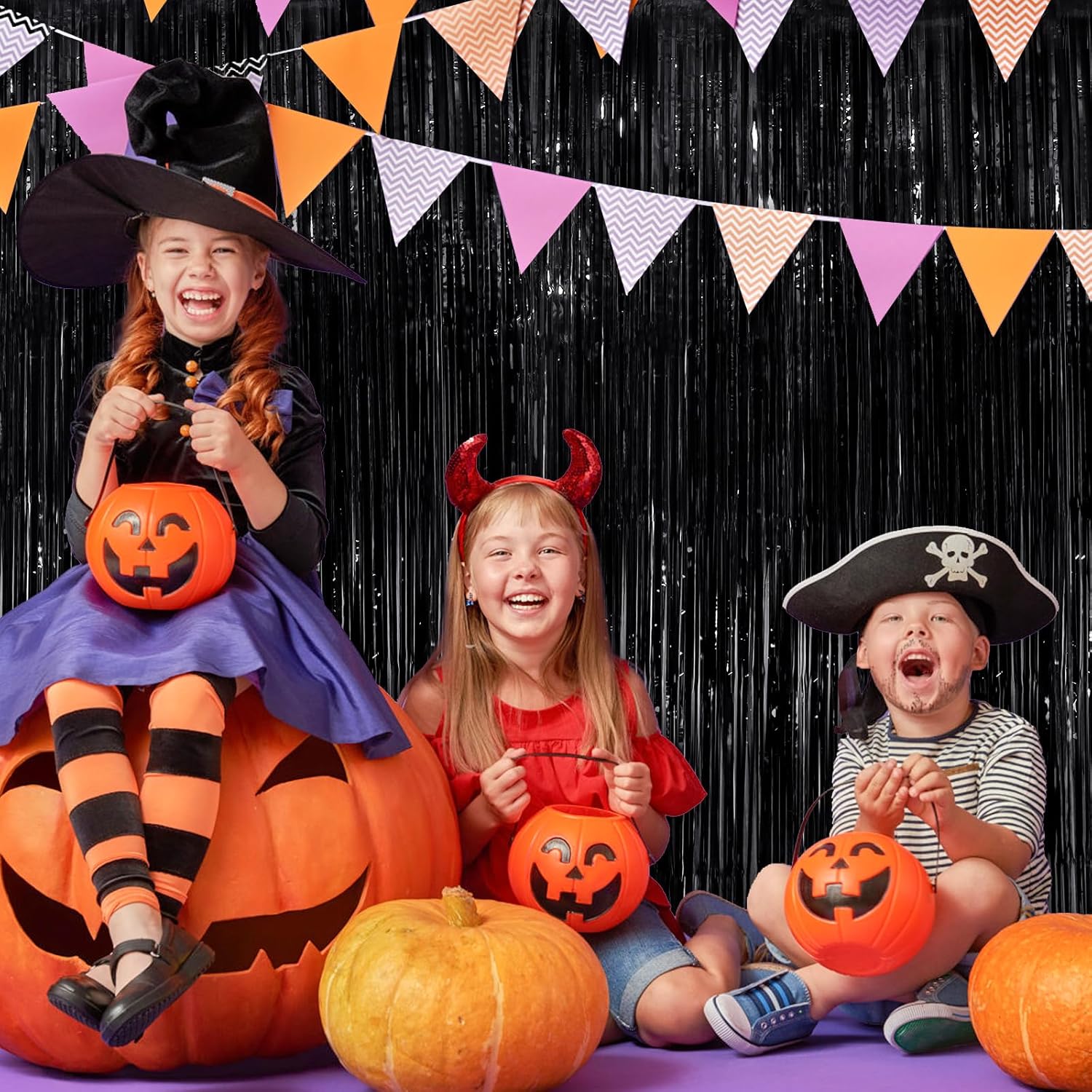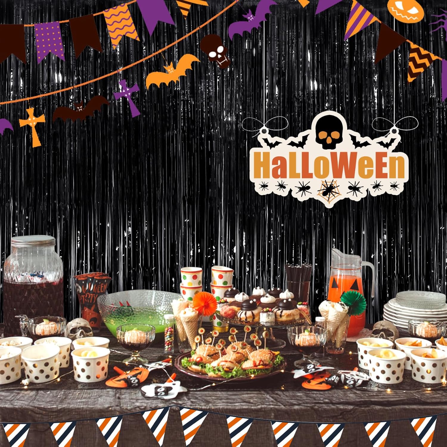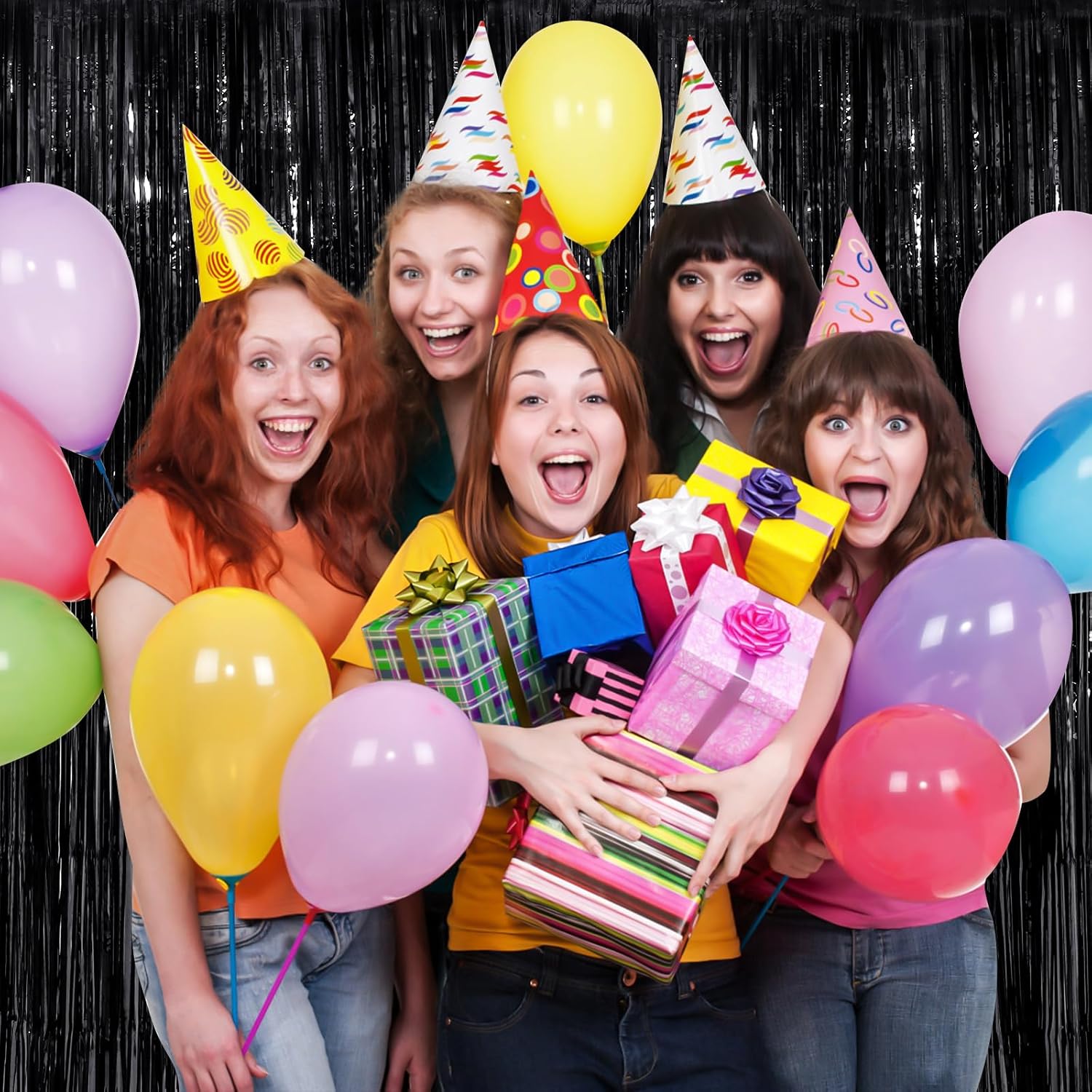 Black Fringe Curtain Party Streamers 2Pack 3.3x8.3 Ft Foil Fringe Backdrop Curtains for Birthday Wedding Bridal Baby Shower Halloween Decor Tinsel Streamers Black Party Decorations Door Streamers
