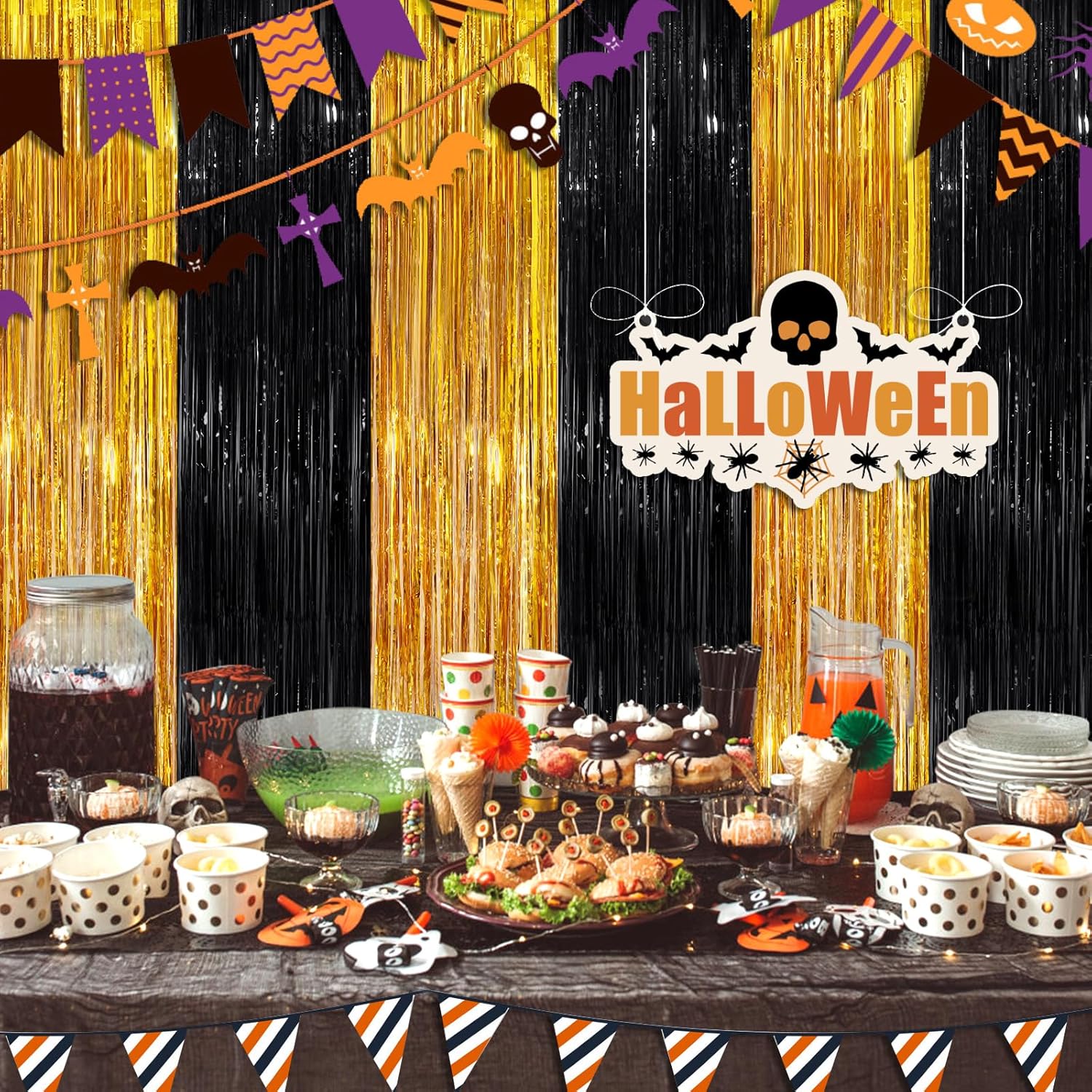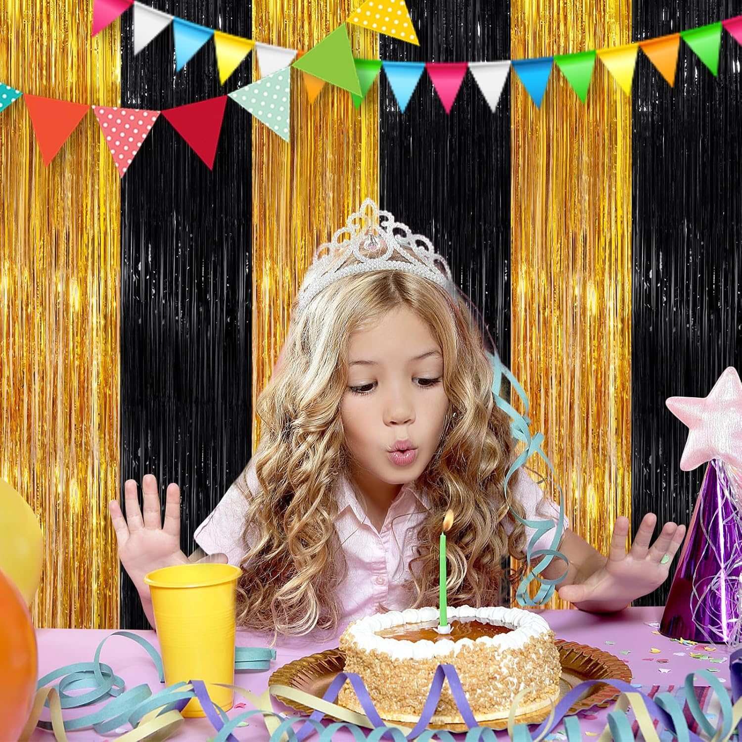 Black Gold Streamer Tinsel Foil Fringe Curtains Streamer 2Pack 3.3X 8.3Ft Streamer Tinsel Streamer Curtains for Birthday Party Decors Wedding Bachelorette Bridal Shower Xmas Decors Streamers